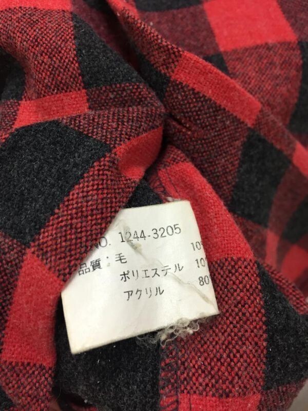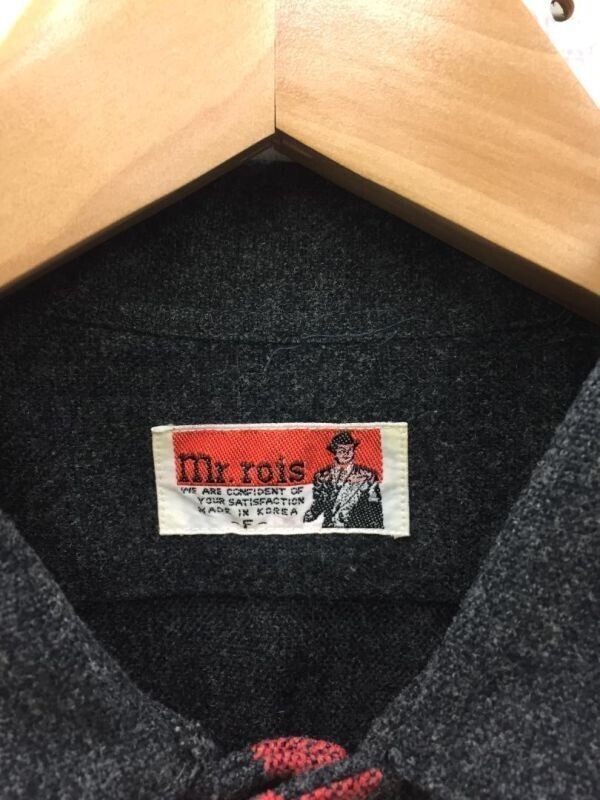 Mr. ROIS メンズ オールド レトロ トラッド 古着 アメカジ ウール混 前面ブロックチェック 長袖フランネルシャツ グレー×赤