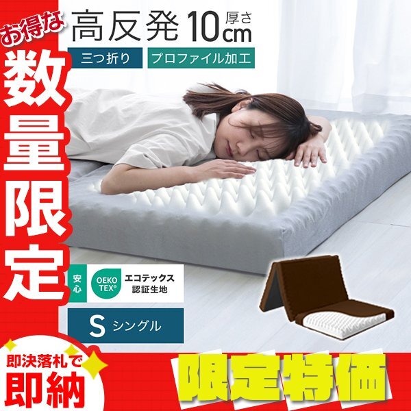 身体を「点」で支え姿勢に合わせて柔軟に変形し、特定の部位に負担がかかるのを防ぎます。 当店のマットレスは適度な反発力と体圧分散性により、理想的な寝姿勢を維持します。 適度な反発力は寝返りが打ちやすく快眠へと導き、スッキリした目覚めを迎えられます♪ 床敷きでも使える厚みたっぷり約10cmです! さらに優れた耐久性でへたりにくく、長くご使用いただけます。 サッと折りたためて収納しやすく、立て置きで湿気対策にもなります。 また、カバーは簡単脱着可能なU字ファスナー仕様&洗えていつでも清潔に使えます。 お好みで裏返してフラット面でもお使いいただけます! 【商品仕様】 カラー:ブラウン サイズ(約)97×195×10cm(シングル) 重量(約):5.8kg 素材:高反発ウレタン 、パイル生地 他 硬さ:180ニュートン ※耐熱仕様ではございませんので、電気毛布との併用はおやめください |