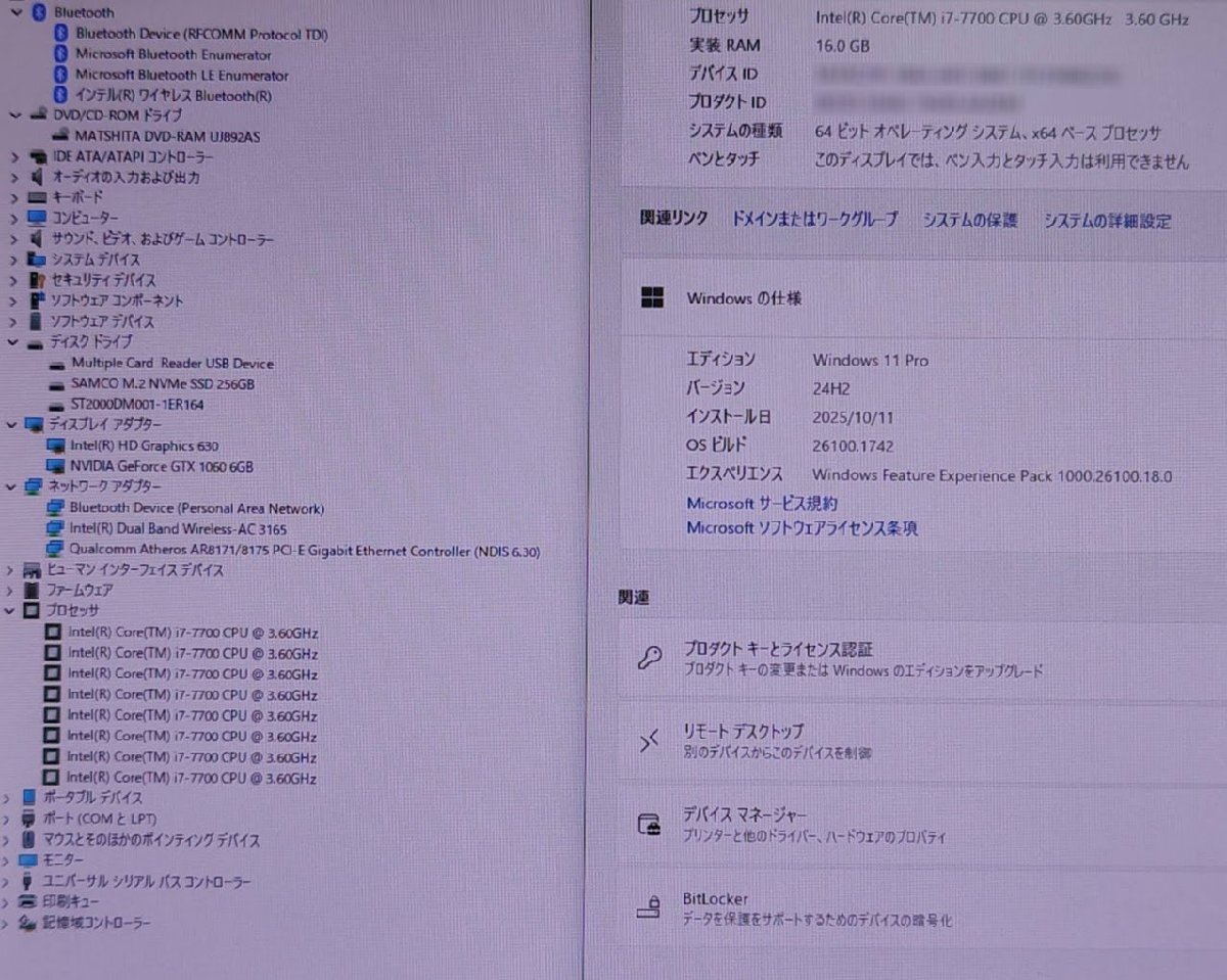 i7-7700 3.6GHz 4コア8スレッド 8MB高速キャッシュ ターボブースト利用時最大 4.2GHz |