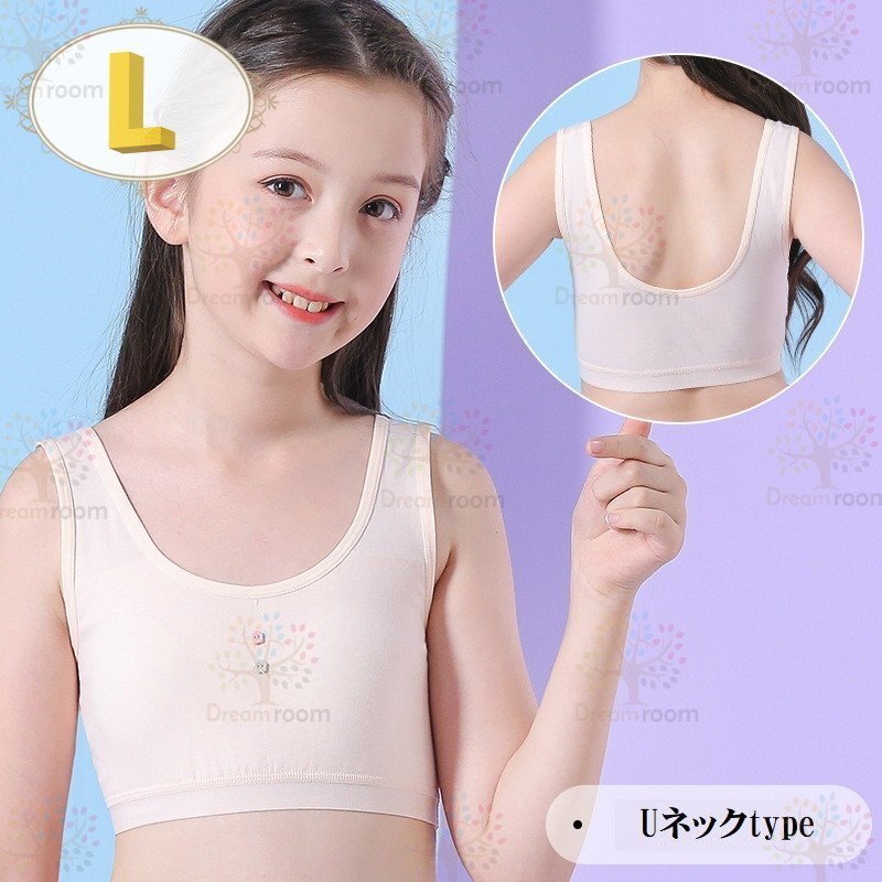 kids Uネック ハーフトップブラ 【L】ベージュ スポーツブラ 子供 ファーストブラジャーインナー 下着 K-410-be