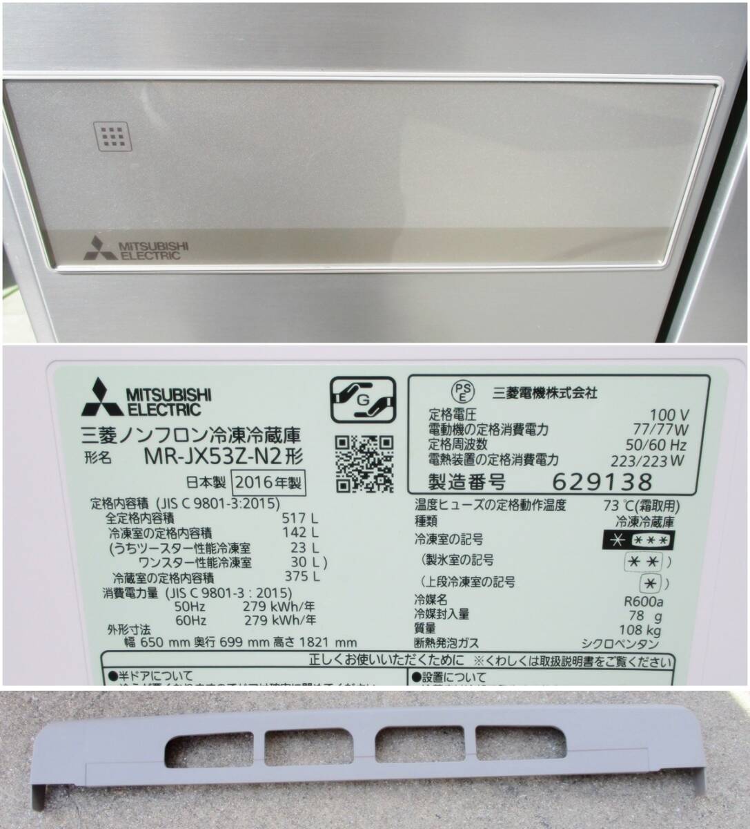 | | 三菱 6ドア冷蔵庫517L MR-JX53Z-N2 動作良好 2016年製 フレンチドア 置けるスマート大容量 氷点下ストッカー 省エネ MITSUBISHI 326ZS | |