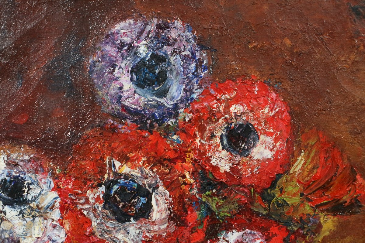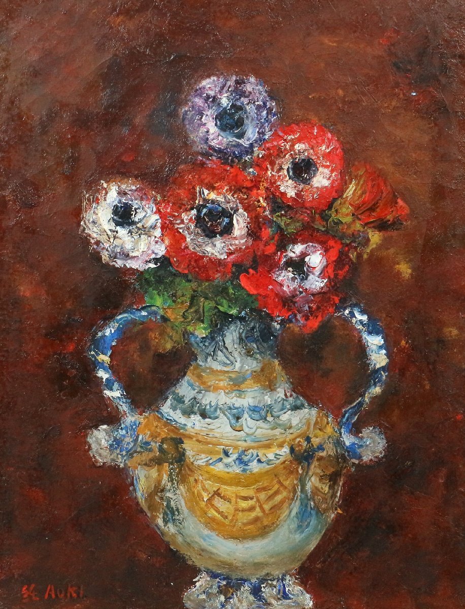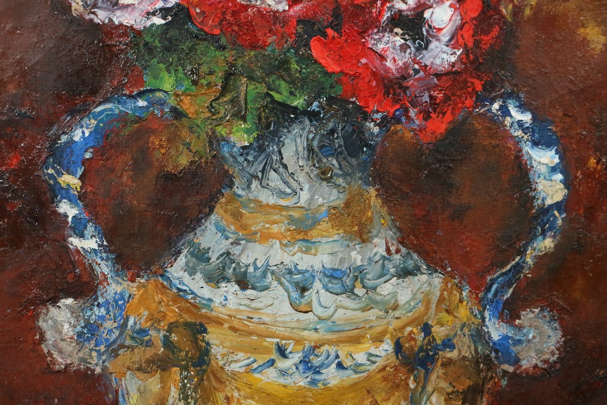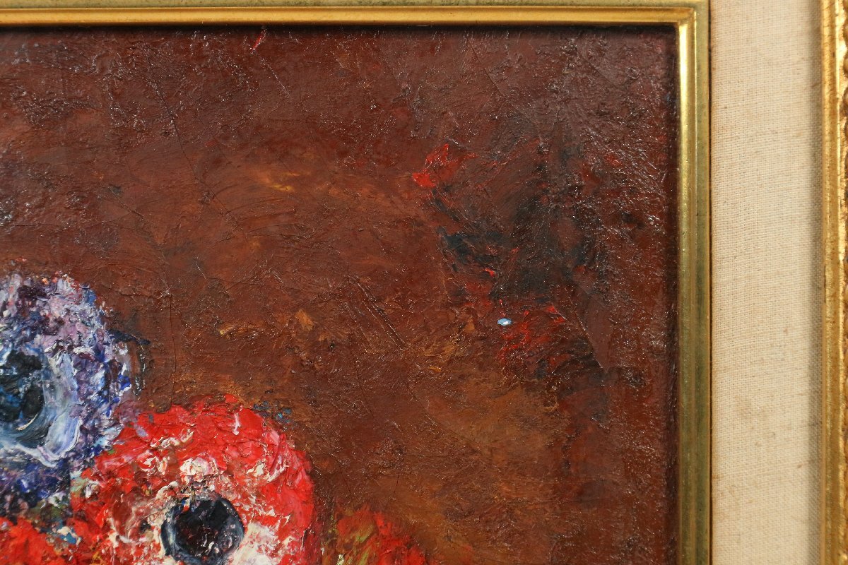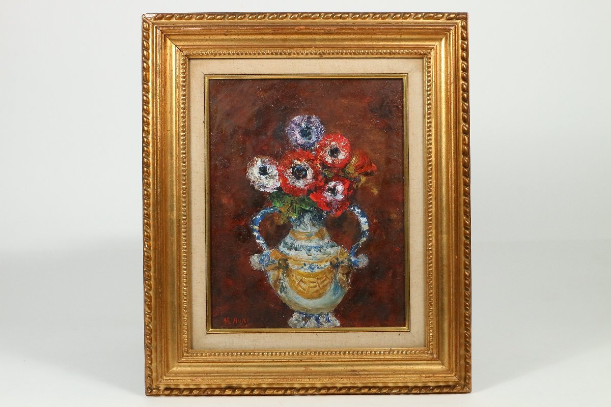 | ・青木純子「アネモネ」5号相当 1974年制作 油彩画 額装品 /油絵 静物画 花 140 |