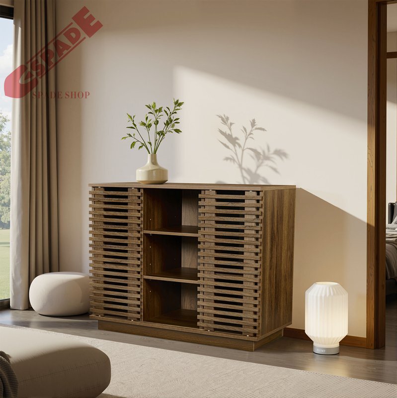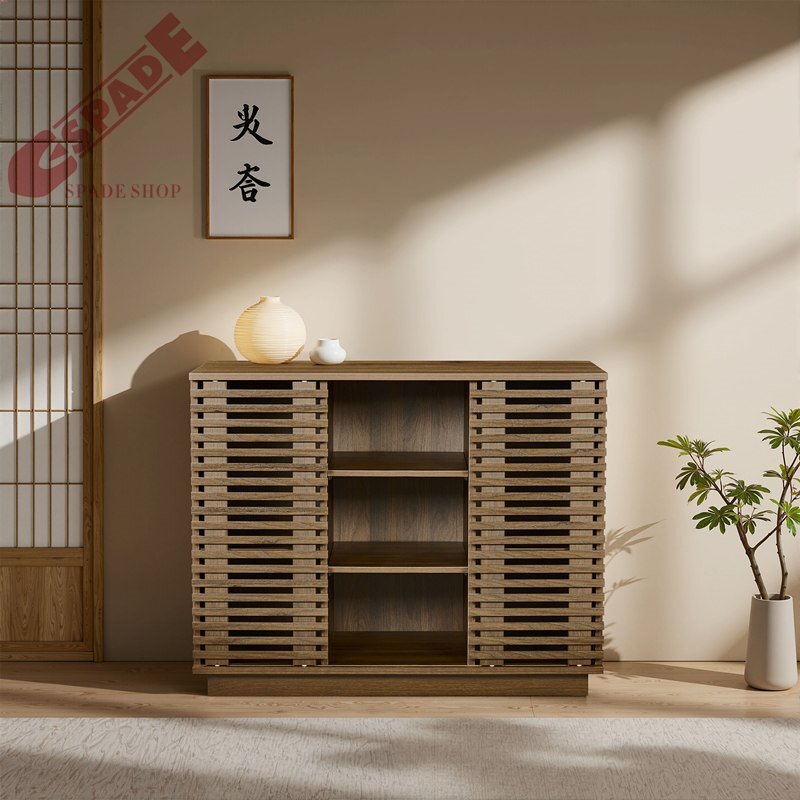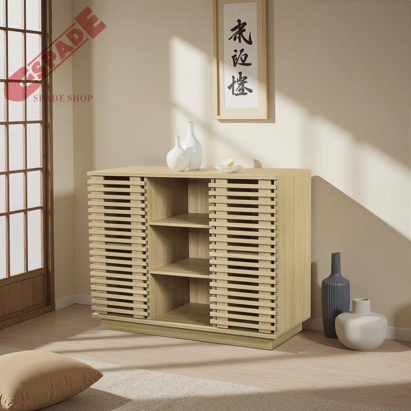【国内発送】 リビング収納キャビネット、サイドボード、収納キャビネット、大容量収納キャビネット ムービングドア