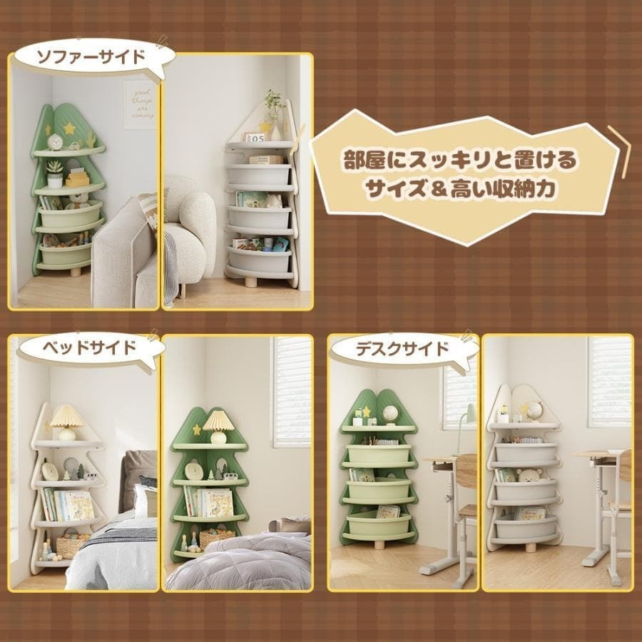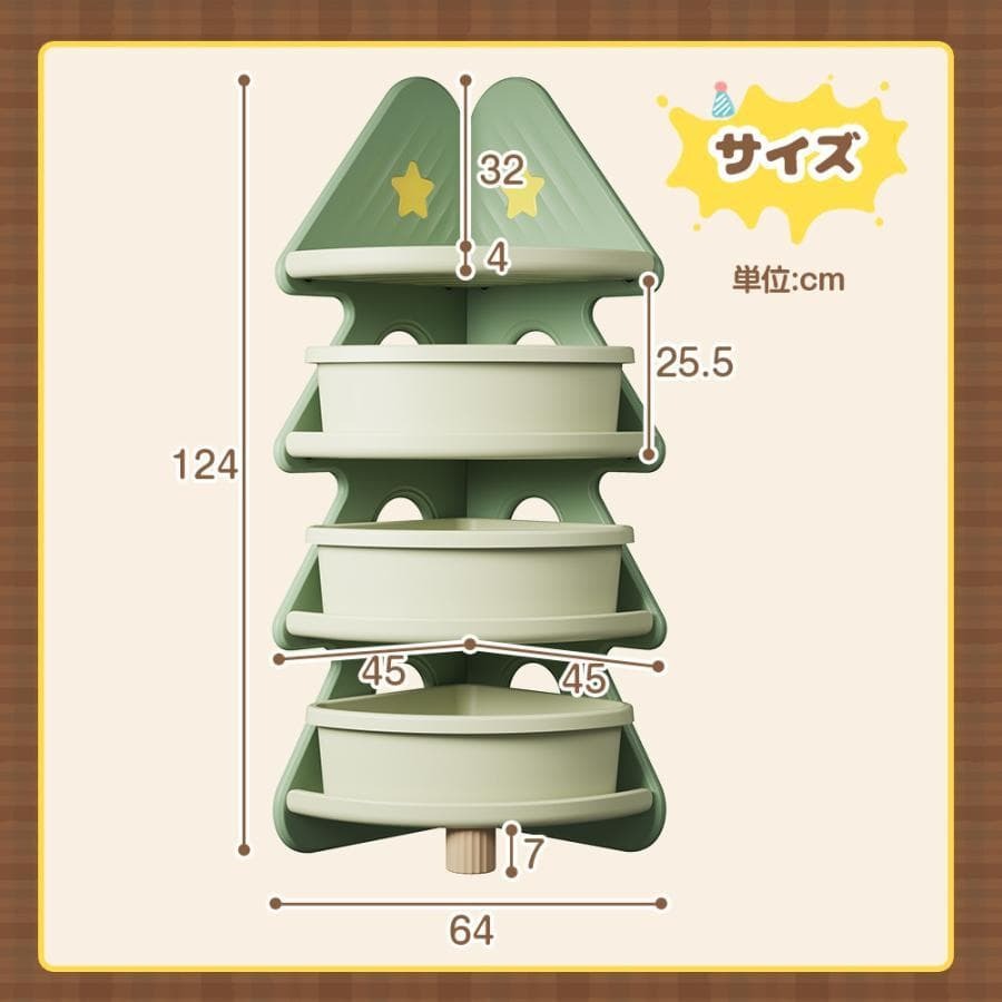 【商品名】:おもちゃ収納 絵本棚 大容量 クリスマスツリー型 キッズ 収納ラック 4階 多機能 おもちゃラック おしゃれ 大容量 引き出し 玩具ラック収納ボックス付き 子供