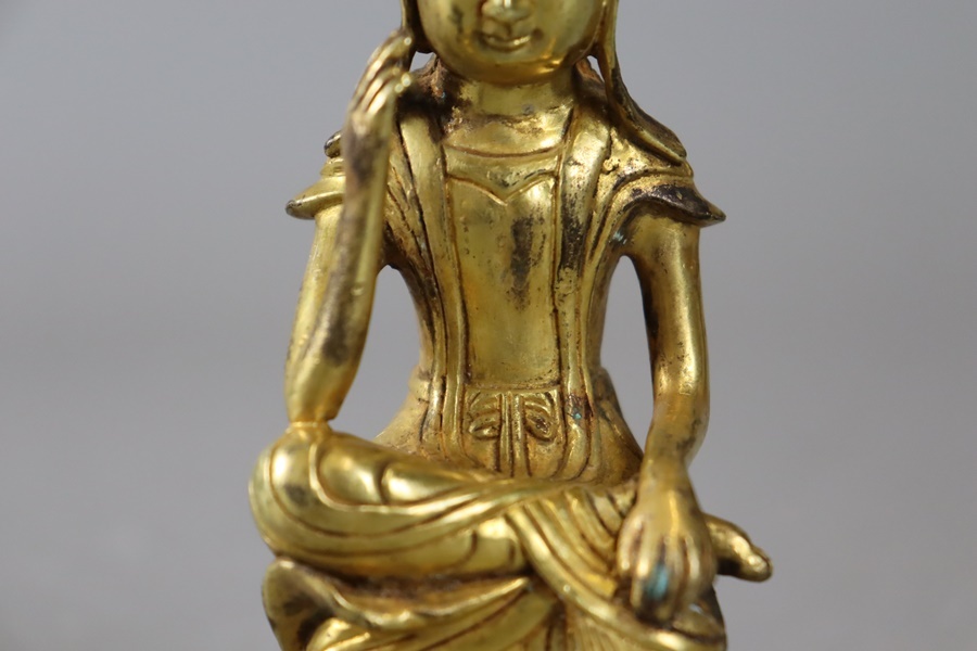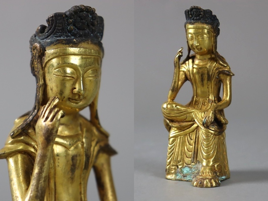 朝鮮美術 古銅 鍍金 弥勒菩薩像 半跏思惟像 仏教美術 仏像 新羅仏 高麗仏 細密細工 古美術品[d1162]