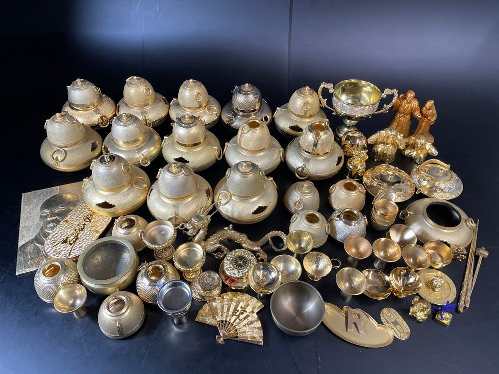 | 商品名 | 【25P3568】1円スタート 金属工芸品 置き物 24KGP 金メッキ 銀メッキ 約23kg以上 まとめ 急須 香炉 ゴールドカラー 金色 縁起物 現状品 |