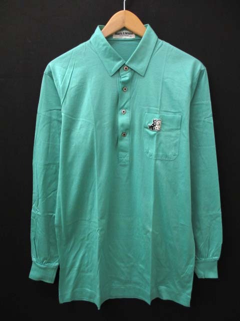 【Y】ブラック&ホワイト 長袖 ポロシャツ L ワンポイント刺繍 /A6