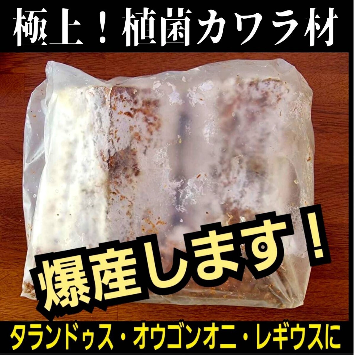 上に写真を10枚載せてますのでご覧下さいませ。 クヌギ・コナラ材にカワラタケ菌糸を植菌・培養したクワガタを産卵させる商品です。 良質の植菌材は入手困難です。 ![]() 何本でも同梱発送致しますのでご希望の本数がございましたらご連絡くださいませ。 オウゴンオニクワガタ系やタランドゥス、レギウスの産卵に抜群の効果を発揮します。 ![]() 植菌されているため、普通の産卵木と違い、材がカビることがなく、初心者の方も手軽に利用できます。 面倒な加水作業も不要ですぐに使えます。 ![]() 長い年月、実験を繰り返し 従来、産卵が非常に困難とされていた、タランドゥス、レギウス、オウゴンオニクワガタの産卵に抜群の効果がある植菌カワラ材を商品化しました。 今やタランドゥス、レギウス、オウゴンオニの産卵でなくてはならないものです。 ![]() さまざまな種類のクワガタや産卵セット方法に対応可能です。 製造過程で高圧滅菌されているため、雑虫の残存も一切ありません。 通常の産卵木では産まない種も植菌カワラ材だと産卵したり、考えられない数の幼虫が取れるなど、今やクワガタの産卵には最強のアイテムになっています。