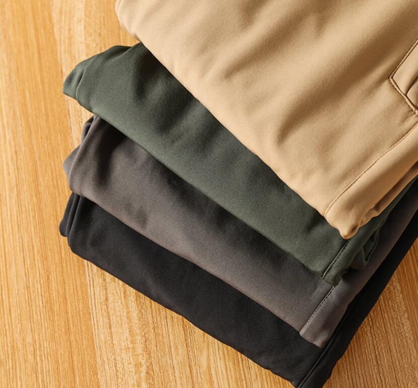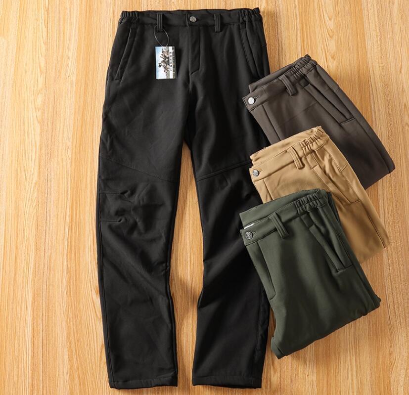 人気品2XL カーキ 新品 ウール混 ストレートパンツ 撥水 秋冬 防寒 厚手 防風 ノーアイロン ウエストゴム ストレッチ メンズ ビジネス
