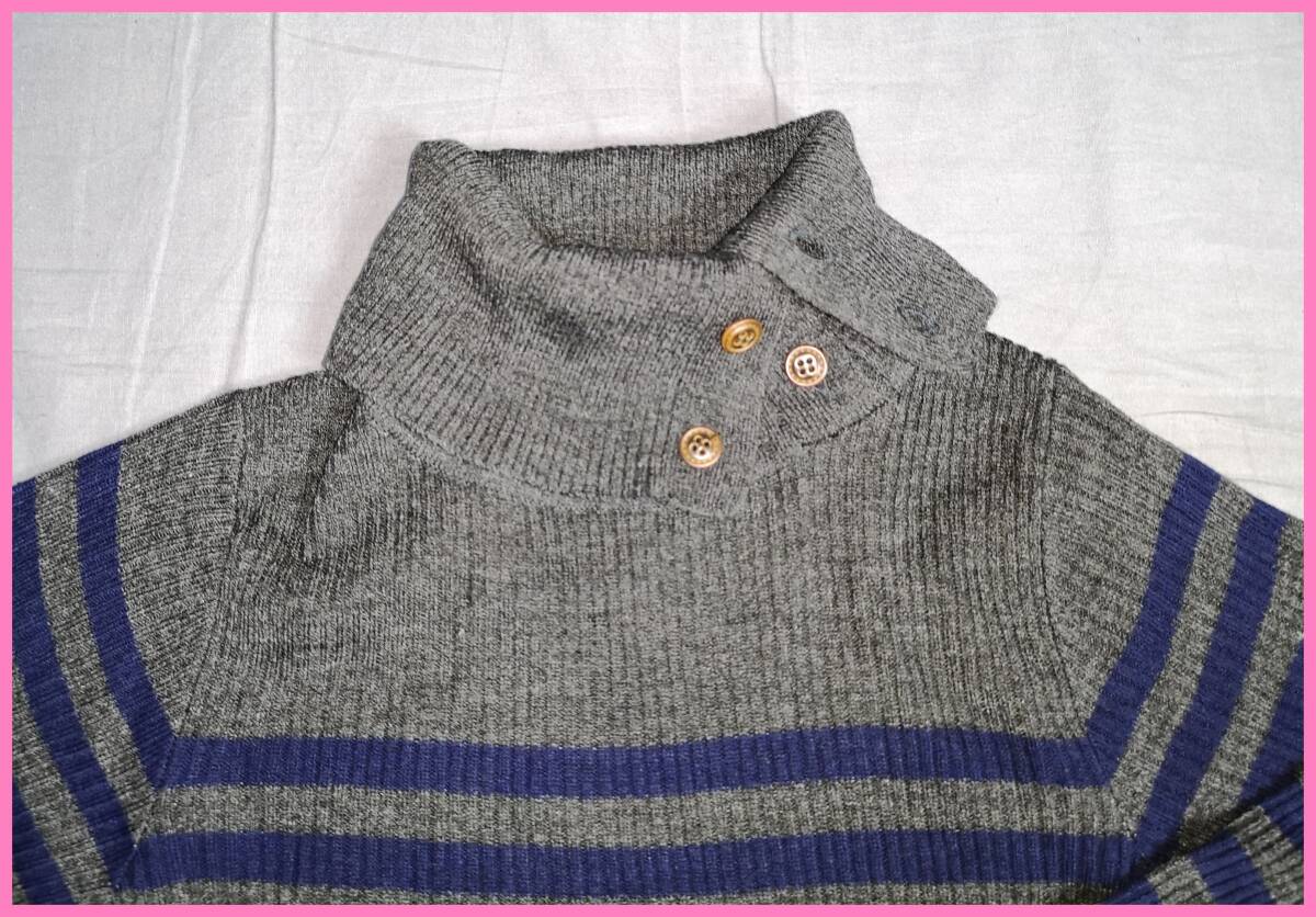 カジュアル着にもちょっとしたお出かけ着にも使えるアイテムですよ!(^^)/ えり元のボタンを開けると、えりのようなデザインになって タートルネックと二通り楽しめますよ!!(^^)! リブニット素材で伸縮性に富む素材です!(*^_^*) ☆ 【 サイズ 】Mサイズ 記載サイズ 身長 … 154~162cm バスト … 79~87cm 伸縮素材 着丈 … 58cm(平置き素人採寸) 身幅 … 35cm(平置き素人採寸) すそ幅 … 35cm(平置き素人採寸) そで丈 … 60cm(平置き素人採寸) えり部分にボタン有り(表飾り2個、裏2個) 【 素材 】 アクリル … 80% ポリエステル … 20% 【 カラー 】 チャコールグレー×紺系 … 1枚 (新品) 希望店頭小売価格 1枚 ¥2090円(税込み) 神経質な方は、ご入札をお控えください。 ノークレーム、ノーリターンです。 ※お洗濯の際に色落ち、色移り等の可能性もありますので 他の物と分けてお洗濯されることおすすめします。 ※サンプル品には、品質表示等のタグは付いておりません。 商品のお取り扱いとうにはご注意ください。 ※送料込みの金額設定で出品している商品に関しましては、 同梱、送料の割引は致しません。 個別発送とさせていただきます。 (おまとめ取引はできません。) ※撮影状況・PC環境により実際の商品と色合いが異なってみえる場合がありますので、ご了承の上ご入札お願いします。 ※セット内容の変更はできません。 |