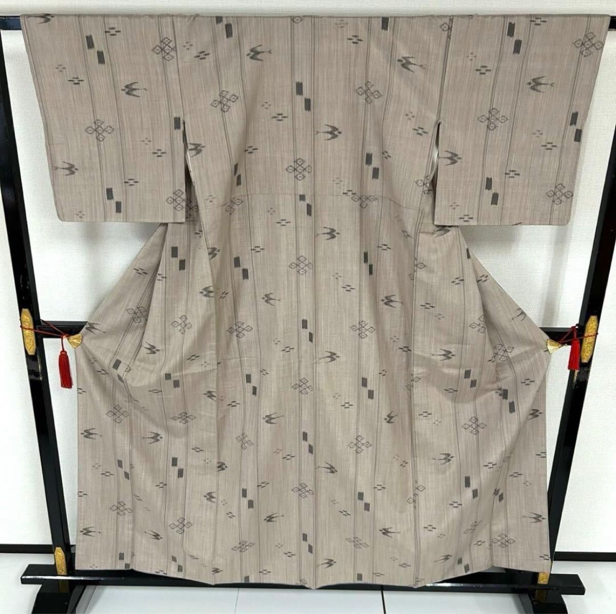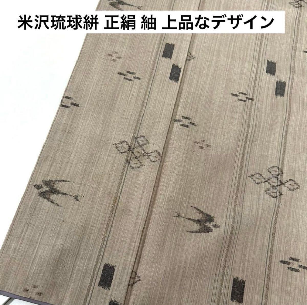 米沢琉球絣 正絹 紬 上品なデザイン 着物U-4869