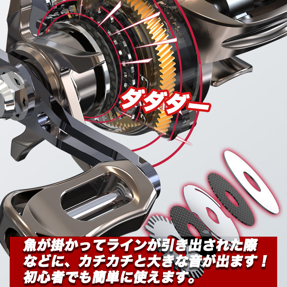 魚が掛かってラインが引き出された際などに、カチカチと大きな音が出ます!初心者でも簡単に使えます。