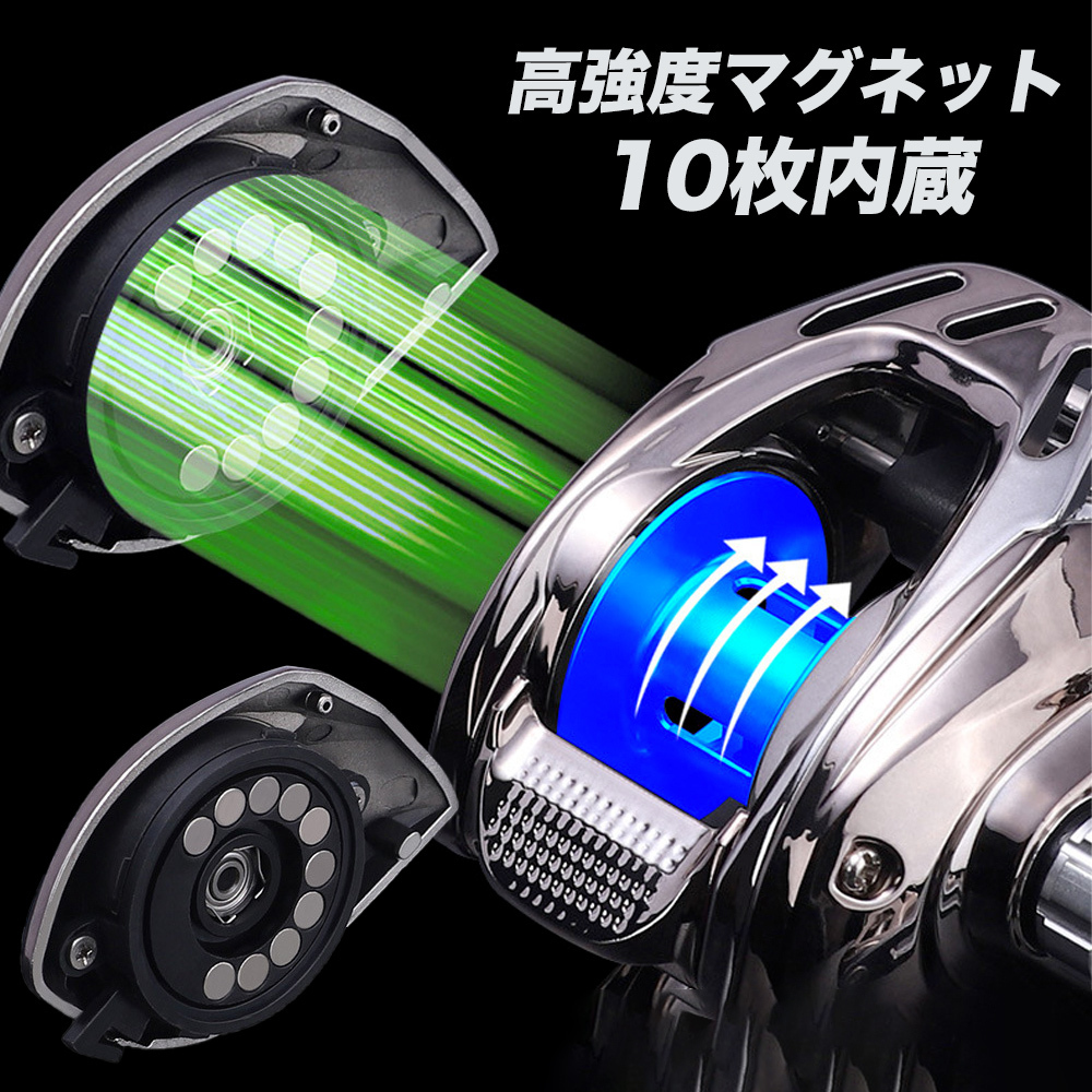 【強力なマグネットブレーキ】 バックラッシュしにくいマグネットブレーキシステムで逆回転防止、ラインの出過ぎも抑止し、トラブルを防ぎます。