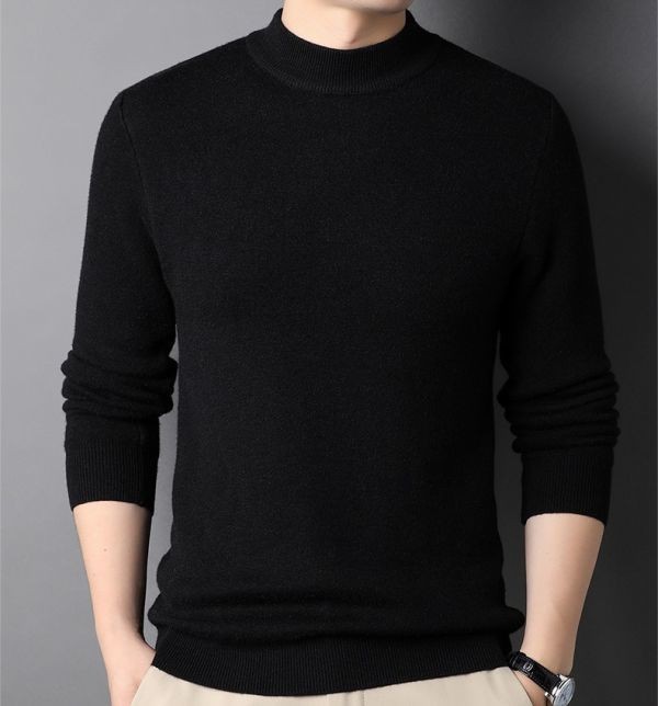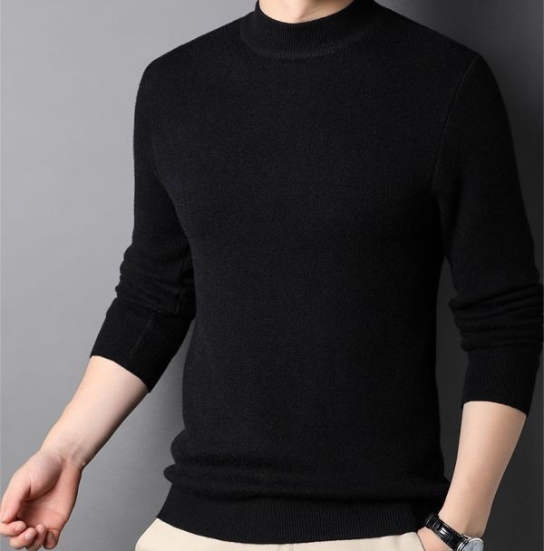 t13【 L 黒 】 ニットセーター スリム メンズ 服 長袖 ニット セーター ハーフタートルネック ゴルフウェア 通勤 通学 40代 50代 60代