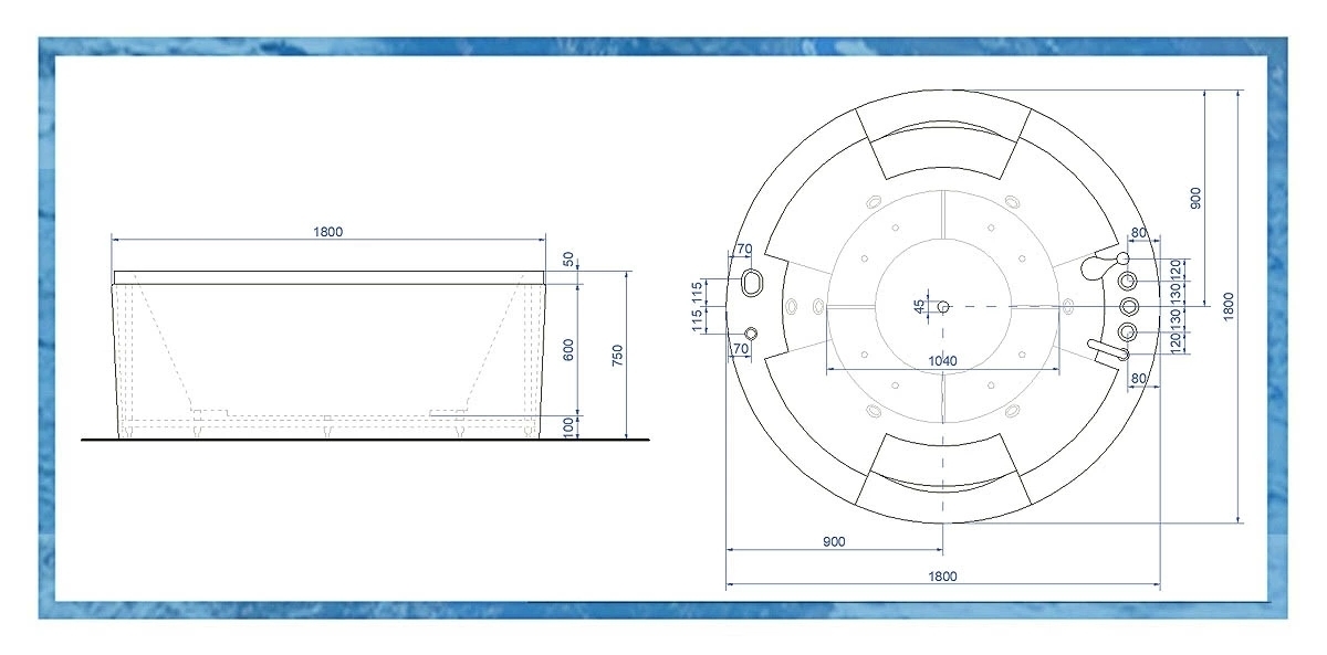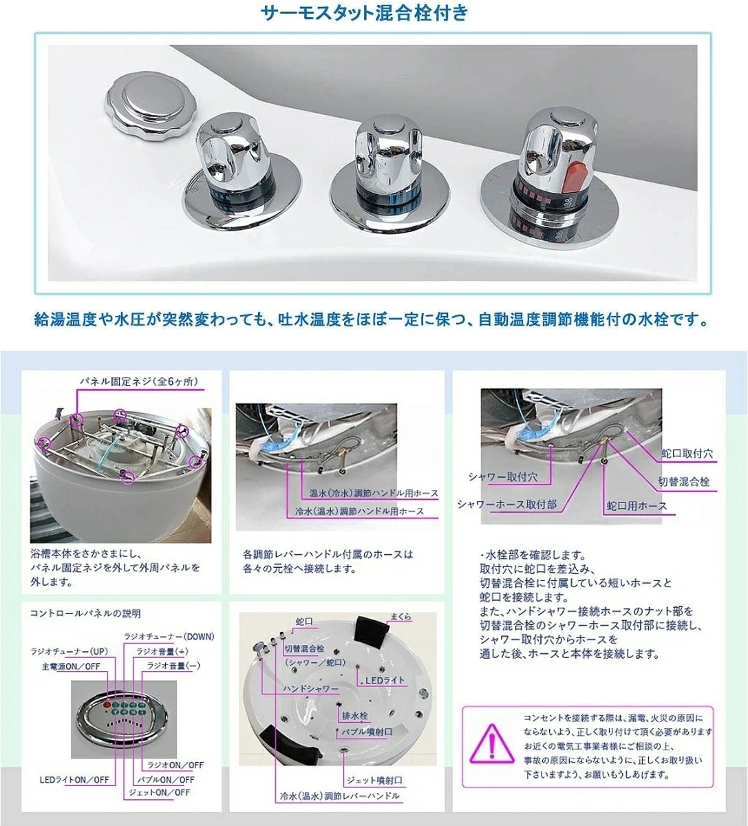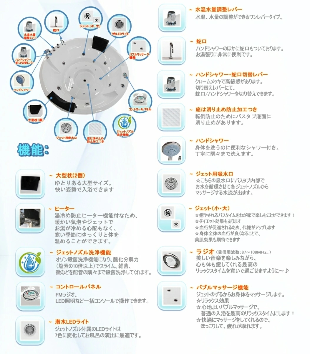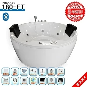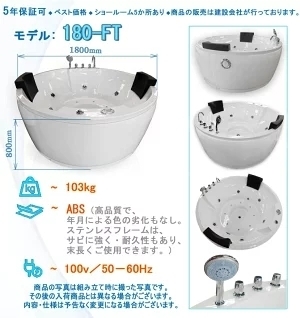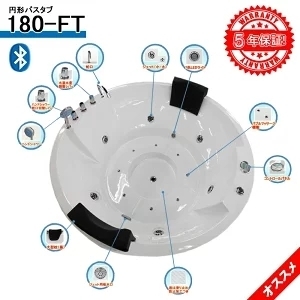 180-FT 180x180x80h 浴槽 風呂 ジャグジー ジャグジーバス ジャグジー浴槽 ジャグジー家庭用 浴槽LEDライト付き サーモスタット 混合栓付き