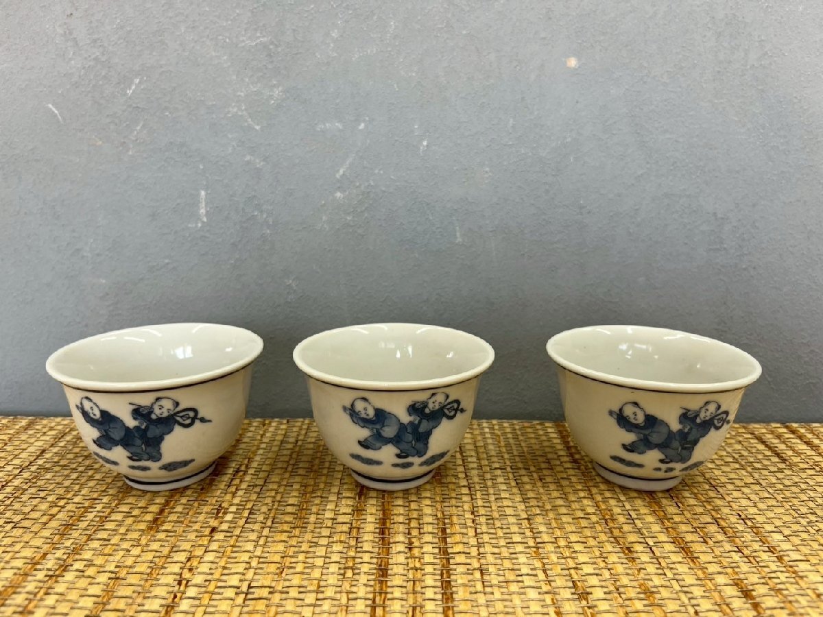 時代物  湯呑 唐子に山水絵★湯呑茶碗3客
