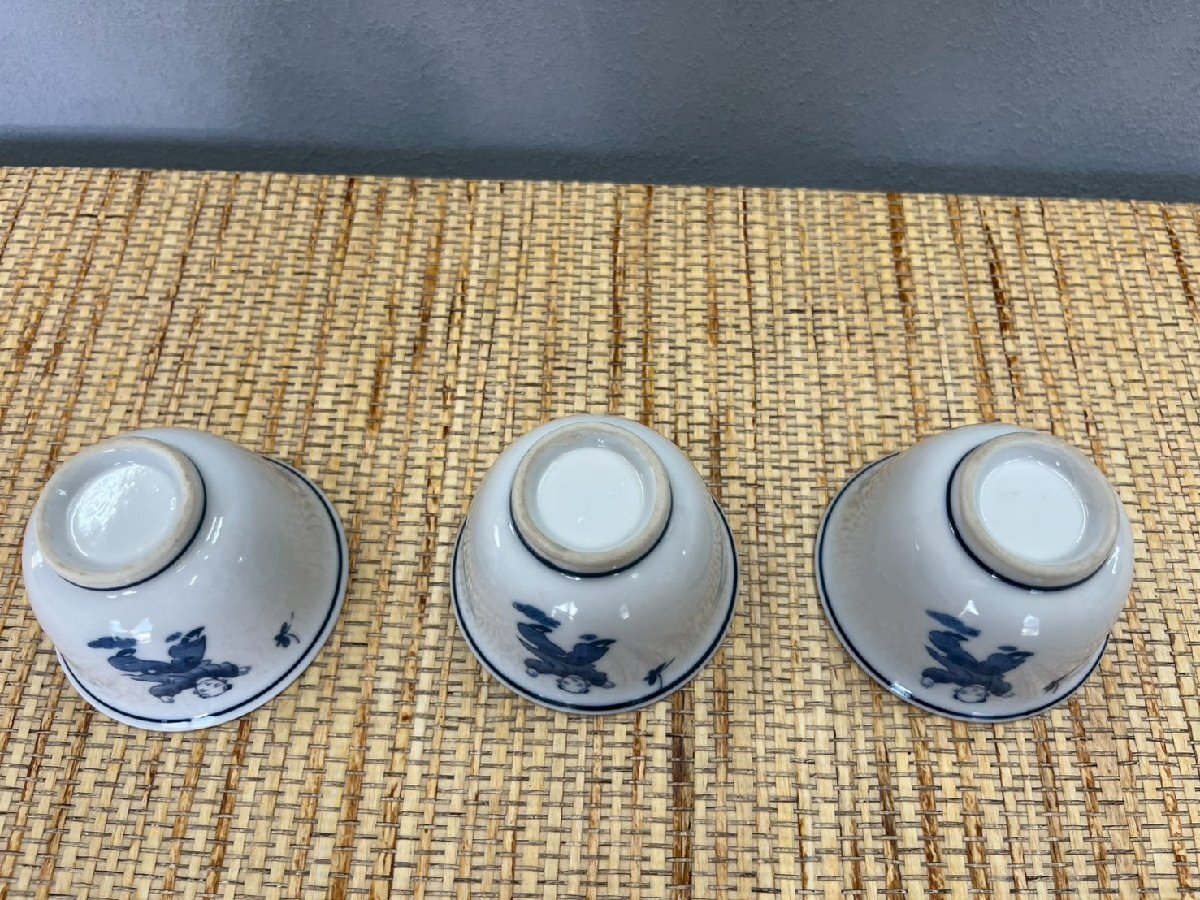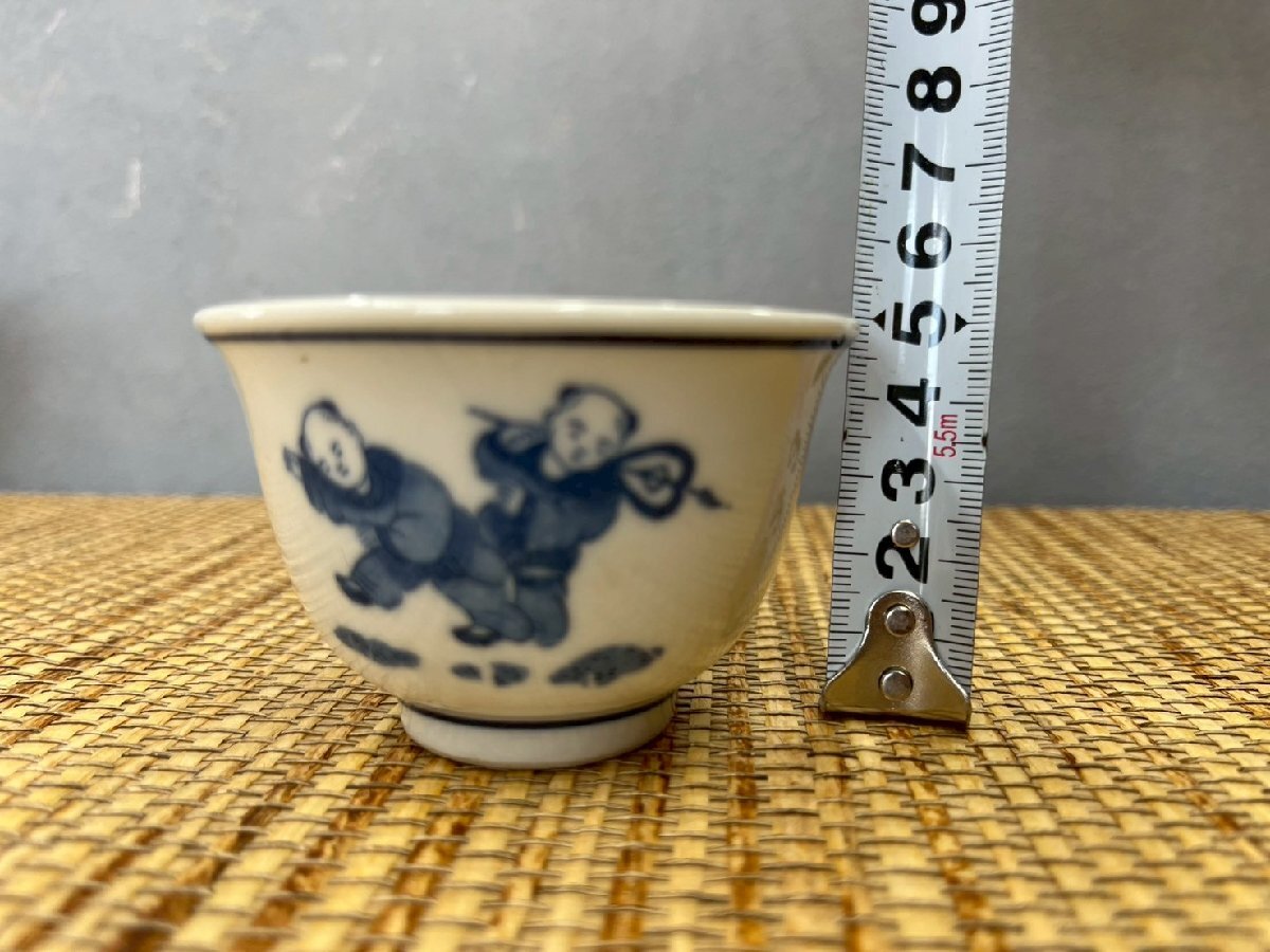 時代物  湯呑 唐子に山水絵★湯呑茶碗3客