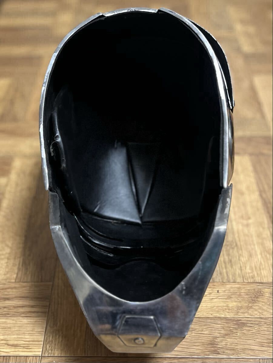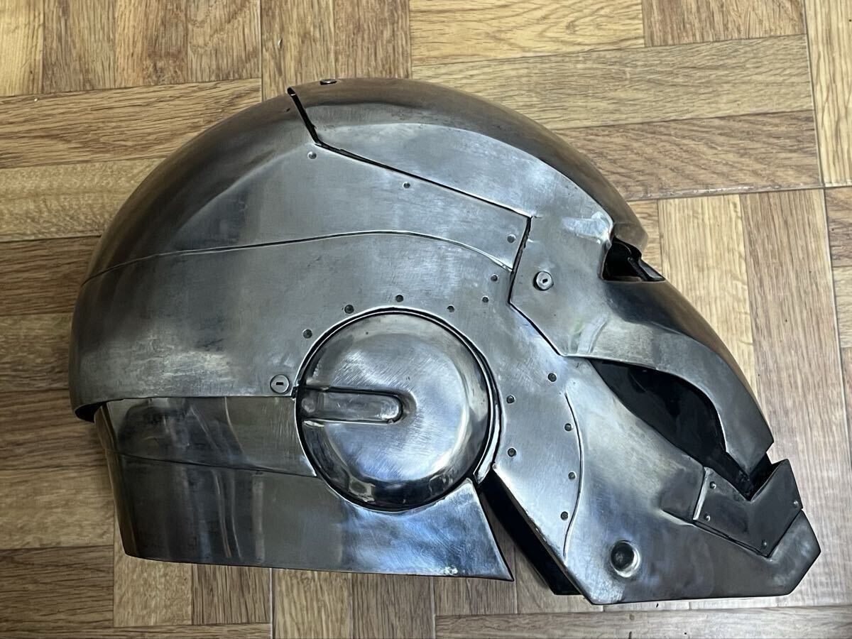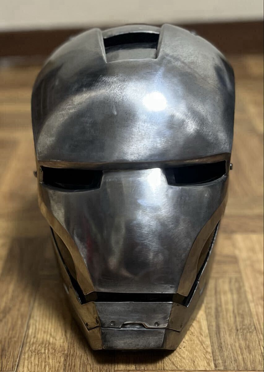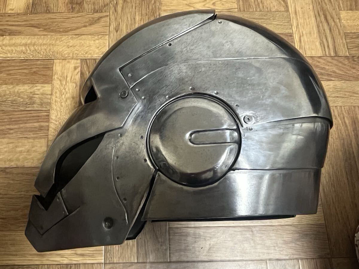 縦 23cm・横 20cm・奥行き 34cmです。鉄で出来ています。その為、重いです。内側は革張りです。大まかにバフで全体を磨いてあります。右目の際に、少しだけ凹みがあります。その他、スレはありますが目立つ傷はありません。