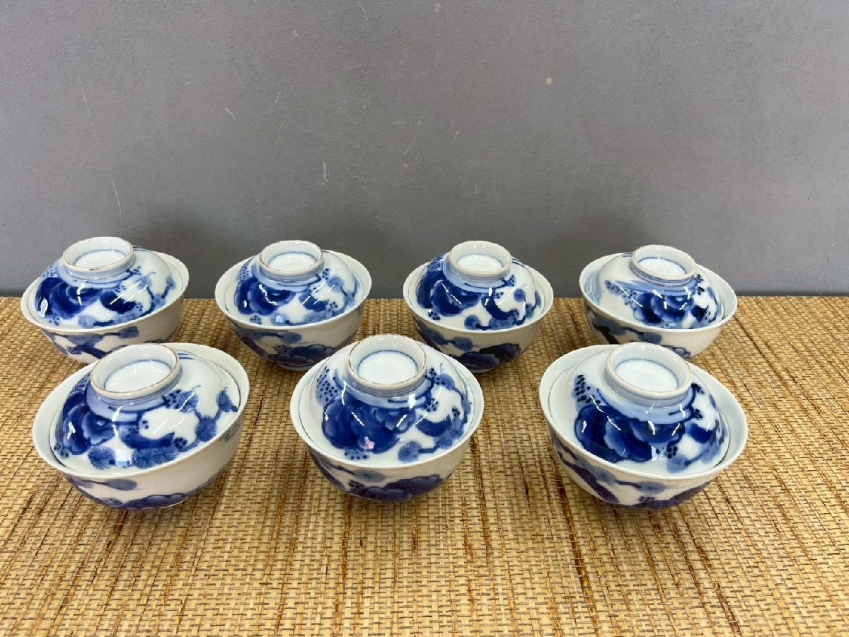 蔵出し 時代物 食器 ミニ丼 丼 陶器 松 古い食器 染付 飯椀★茶碗7客