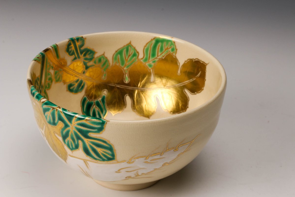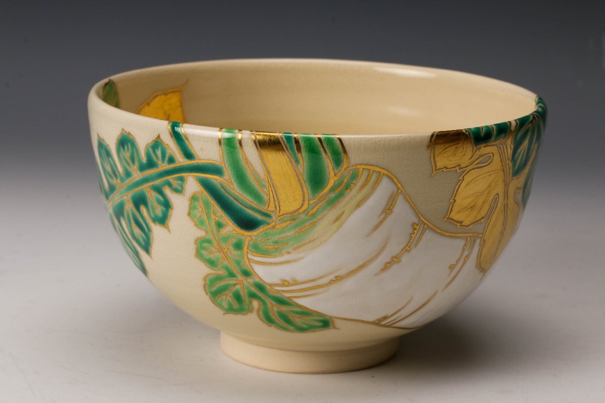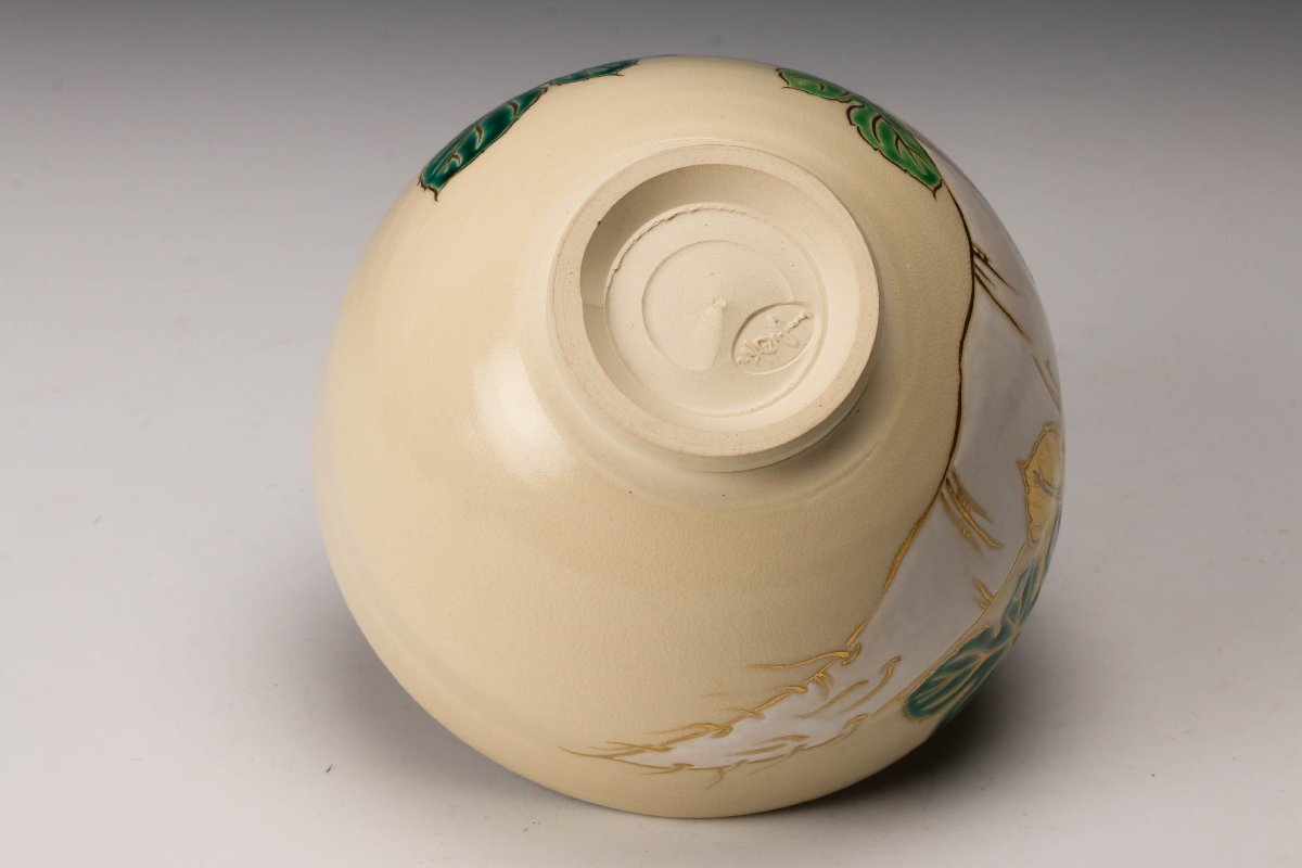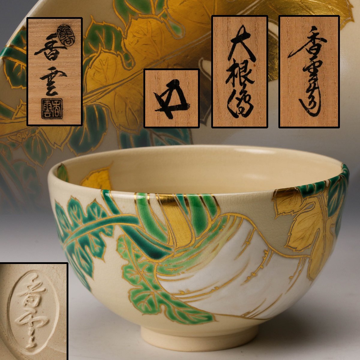【佳香】宮川香雲 大根絵茶碗 裏千家十五代鵬雲斎(汎叟宗室)書付箱 共布 栞 茶道具 本物保証