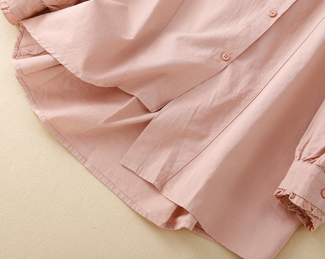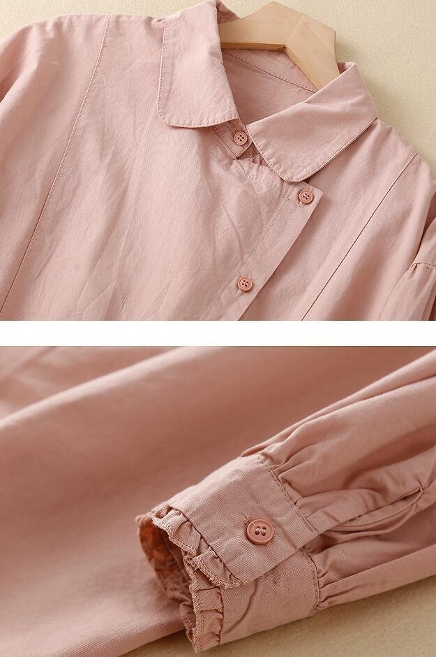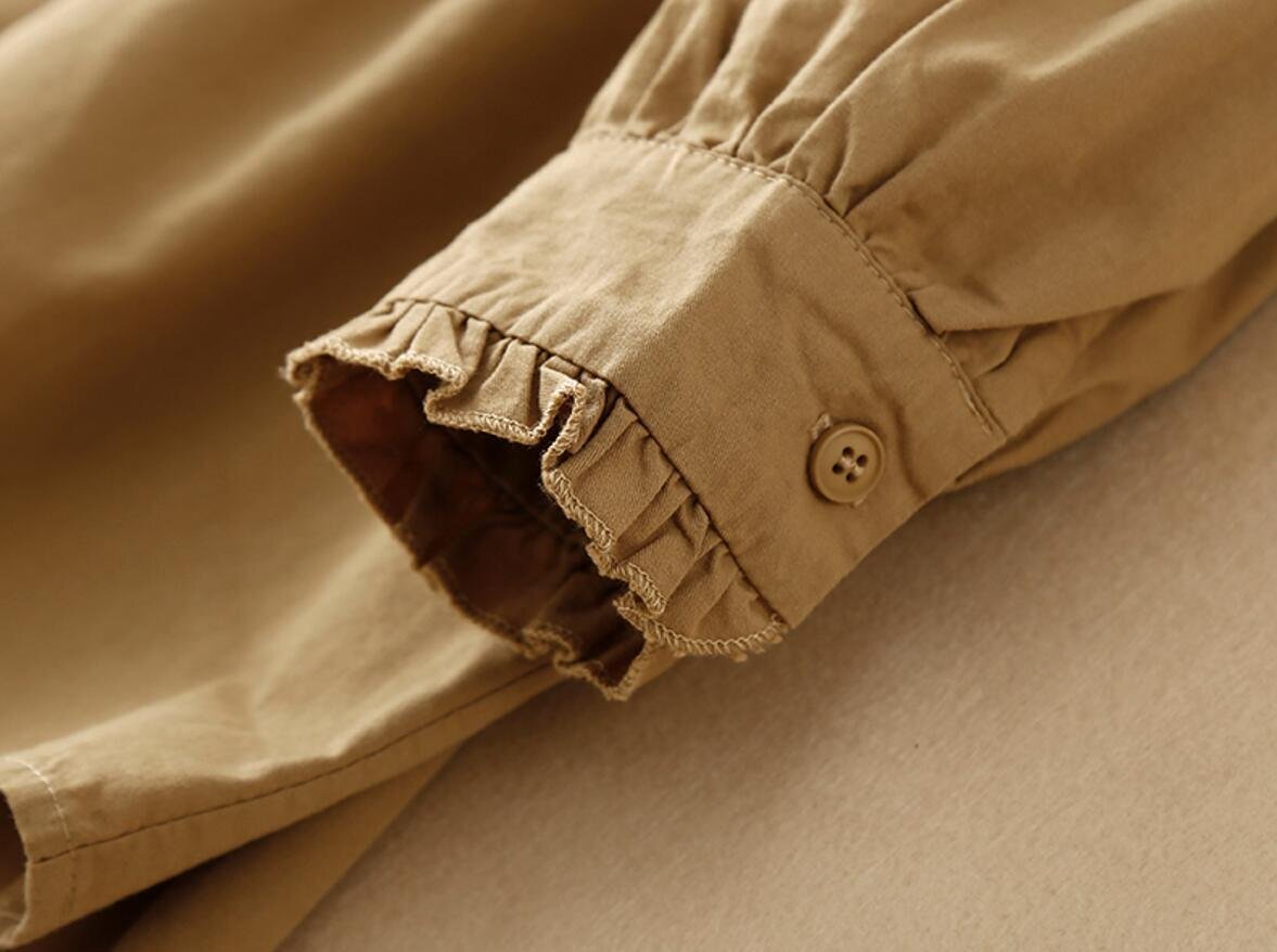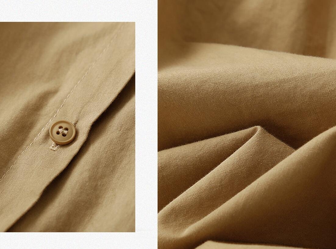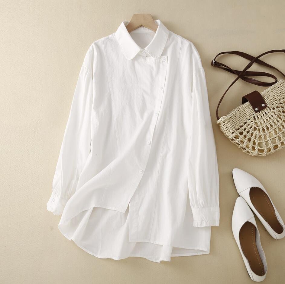 秋新品 不規則 コットン 長袖 トップス 大きいサイズ オフィス 通勤大人 シャツ チュニック★カーキ/XLサイズ