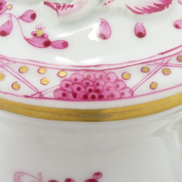 | 商品説明 | 【訳あり】マイセン コーヒーポット インドの華 ■ リッチピンク 高さ16.5cm 金彩 洋食器 meissen 1個 マイセンのインドの華 リッチピンクのコーヒーポットになります。 マイセンはヨーロッパで初めて硬質磁器を生みだしたドイツの名窯です。 1709年、9年の歳月をかけて研究され白磁の製造に成功し、以来、ヨーロッパ最古の窯として世界的な名声を得ています。 東洋の美しい陶磁器に魅了されて、独自の絵柄に発展させたマイセンの「インドの華」は、とても人気のある永遠の定番シリーズです。 裏面にマイセンの青い双剣マークが入っています。 個数: コーヒーポット1個での出品となります。 サイズ: 高さ 16.5cm(蓋持ち手部含む) 状態: 使用には問題ございませんが、蓋の花びらに欠けがございます。 お写真をご確認ください。 本物保証いたします。 素人による採寸・写真撮影となりますので神経質の方は入札をお控え下さい。 商品の個体差や写真の環境サイズ・色・デザインが多少異なることがございます。 アンティーク、ヴィンテージ品となりますので製造過程のロス等もございます。 些細な事など気になさる方はご入札をお控えいただきますと幸いです。 新規の方又は評価の「悪い・非常に悪い」が多い方の入札は当方にて取り消す場合がありますのでご了承ください。 ご安心頂くためにあえて記述いたしますが、 万が一贋作であると鑑定・証明された場合には、 お詫びとともに速やかに返品・返金対応いたします。 ほかにもロイヤルコペンハーゲン・マイセン・ヘレンドなどリーズナブルな価格で出品させていただいております。 是非ご覧ください。 落札後の流れですが、 単品、同梱にかかわらず、何も訂正せずにすべての商品を取引ナビから購入ボタンを押してから住所など確認し 支払いボタンまで押してください。 単品の方はそのまま発送連絡までお待ちください。 支払いボタンが押されたものは、当方で同梱可能なものは金額変更をいたします。 いままでかんたん決済でお客様が金額調整していたことを当方でやることになりましたので 発送時に当方が金額訂正をしたらヤフーから返金戻りや金額変更など登録アドレスに通知がいきます。 支払いボタンが押された物でお客様の同日落札の同メールアドレスで同梱を組んでおりますので 単品発送希望の場合住所などに単品と記載して支払いボタンを押してください。 n25439  |