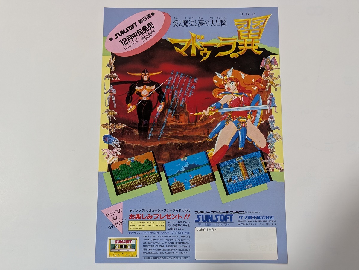 ファミコン チラシ マドゥーラの翼 / サンソフト SUN SOFT ファミリーコンピュータ