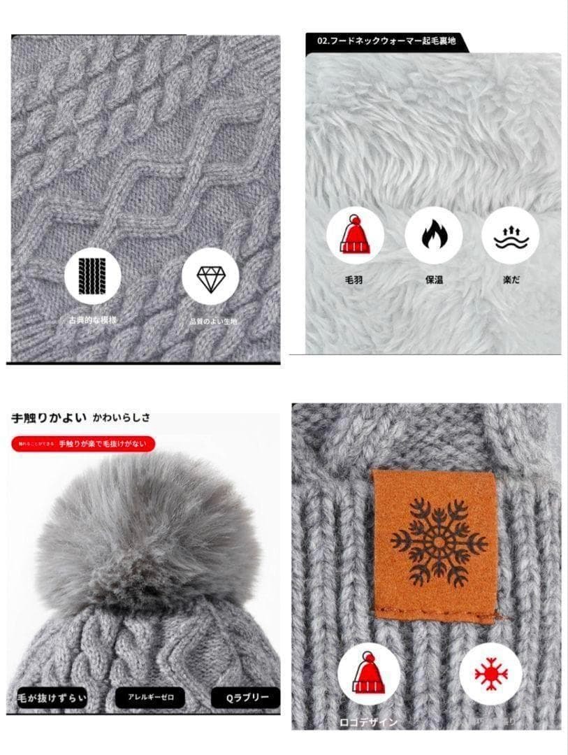 【 商品名 】ニット帽 ネックウォーマーセット4 グレー AW004-SG