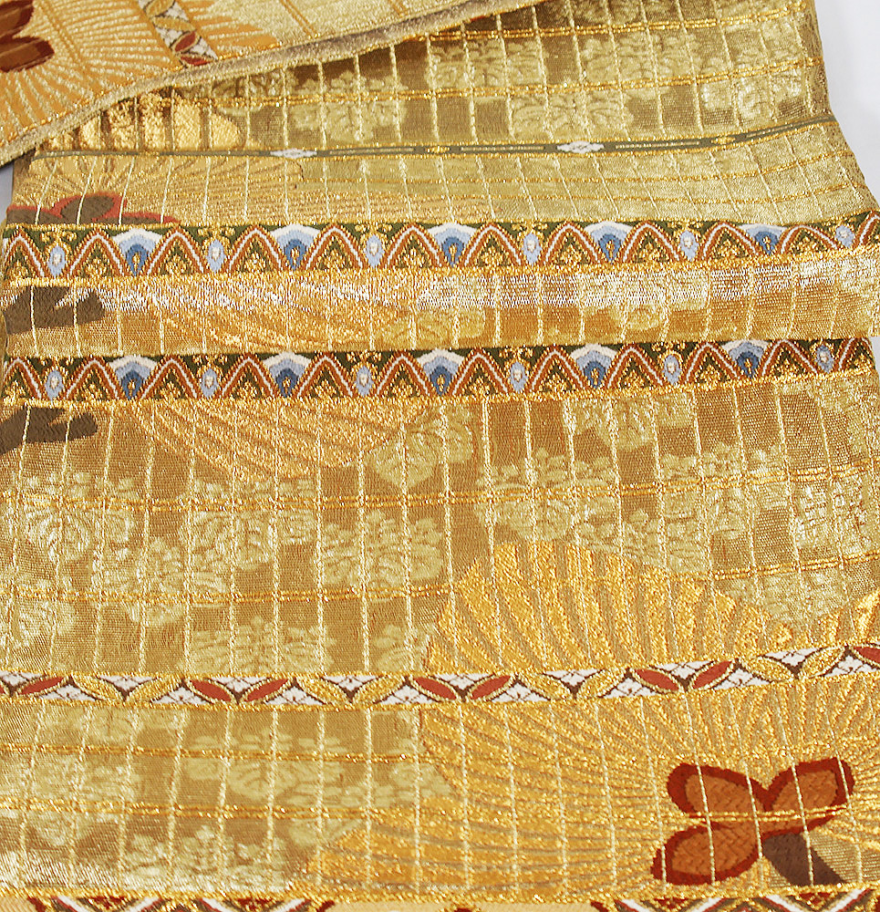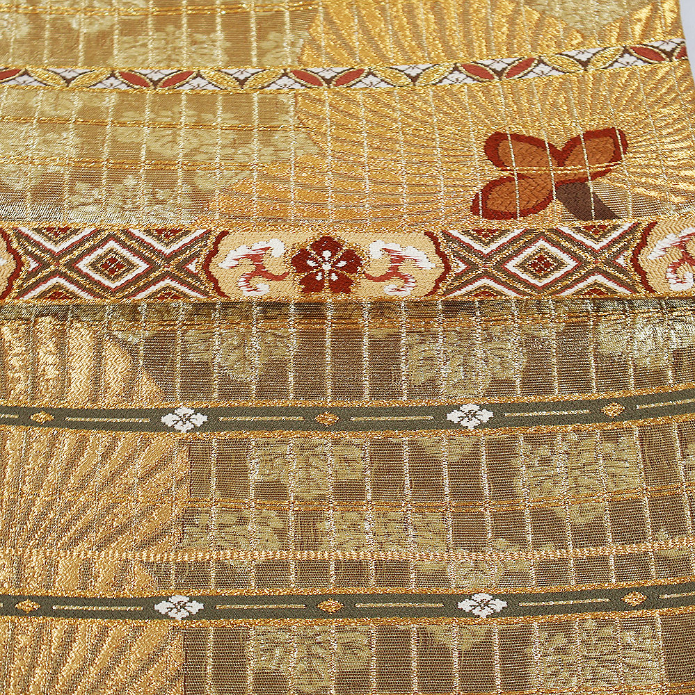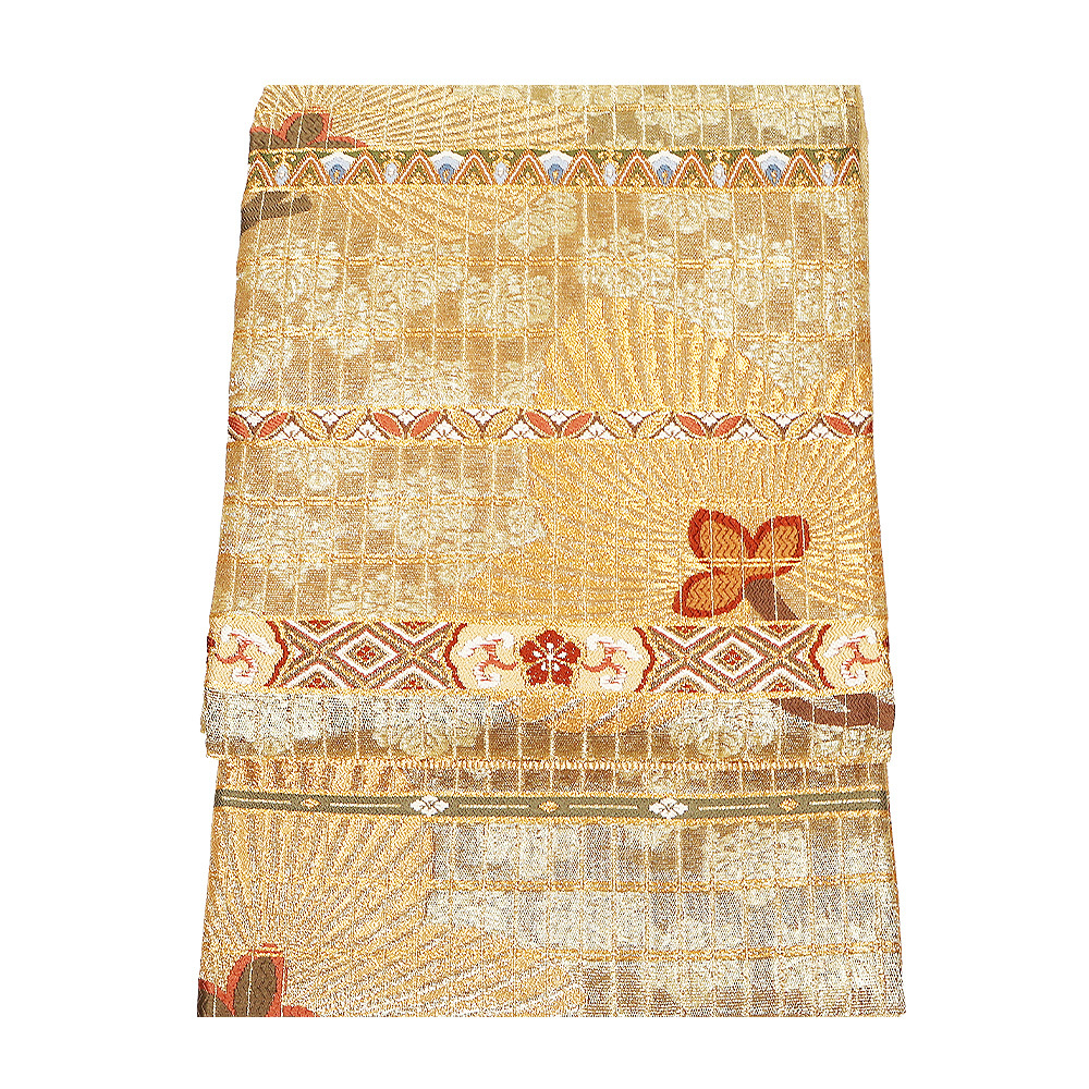 | 西陣織袋帯 金・緑地 松・桐・パルメット唐草文様 未使用品 仕立て上がり | |