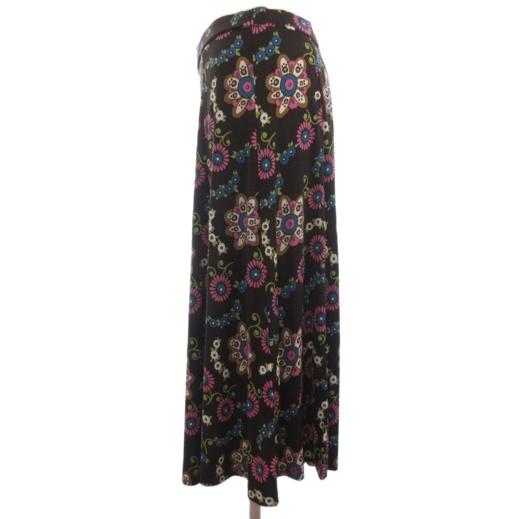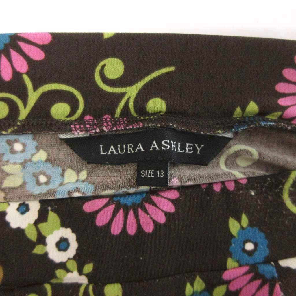 ローラアシュレイ LAURA ASHLEY フレア スカート 花柄 ミディ丈 ダークブラウン 13 XL位 ■ECT レディース