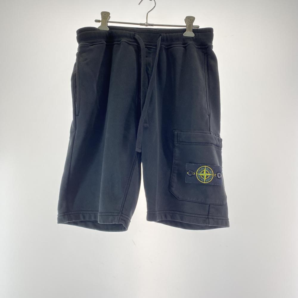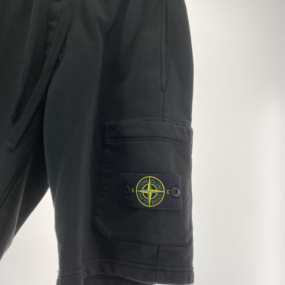 | 209999773004)STONE ISLAND ロゴ バミューダ スウェット ショートパンツ サイズS 801564651 ブラック |