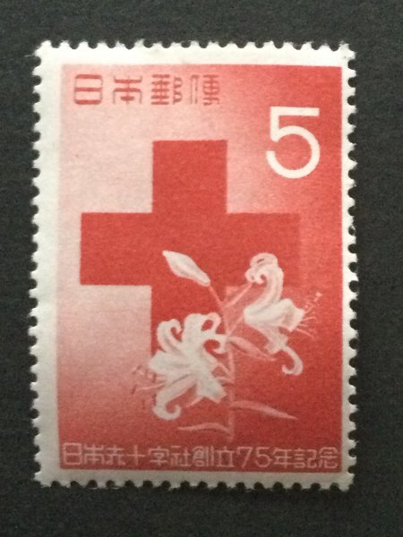 ■■コレクション出品■■【日本赤十字社創立75年】赤十字とゆり 1952年 額面5円