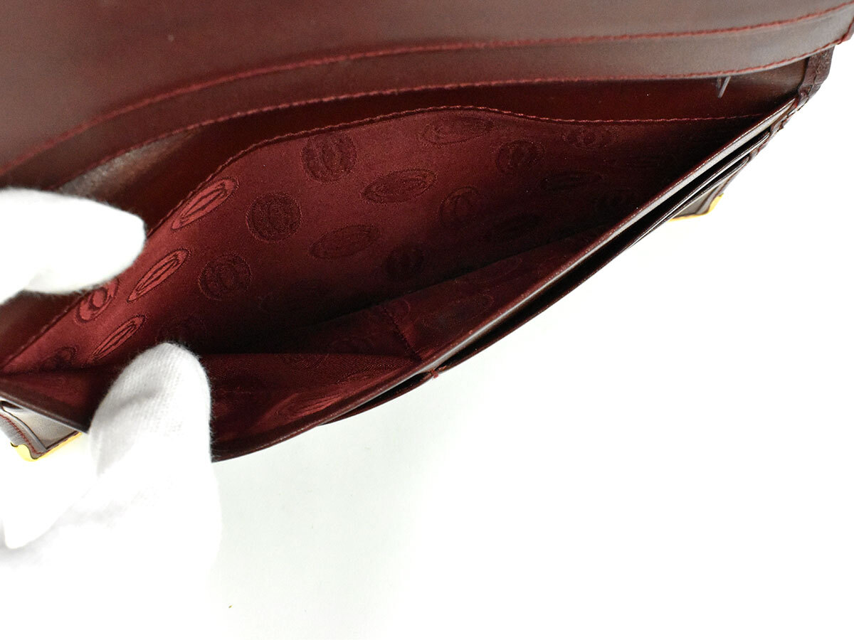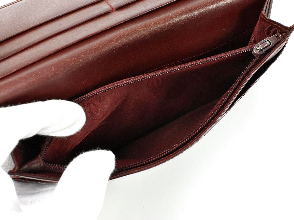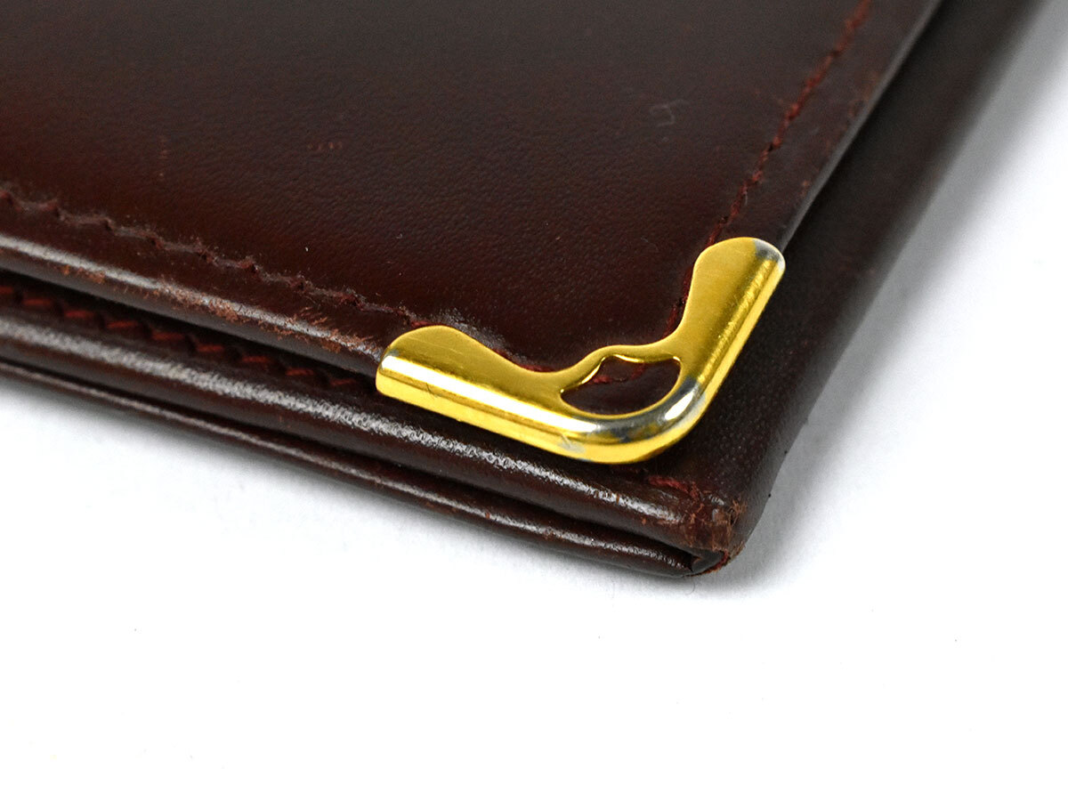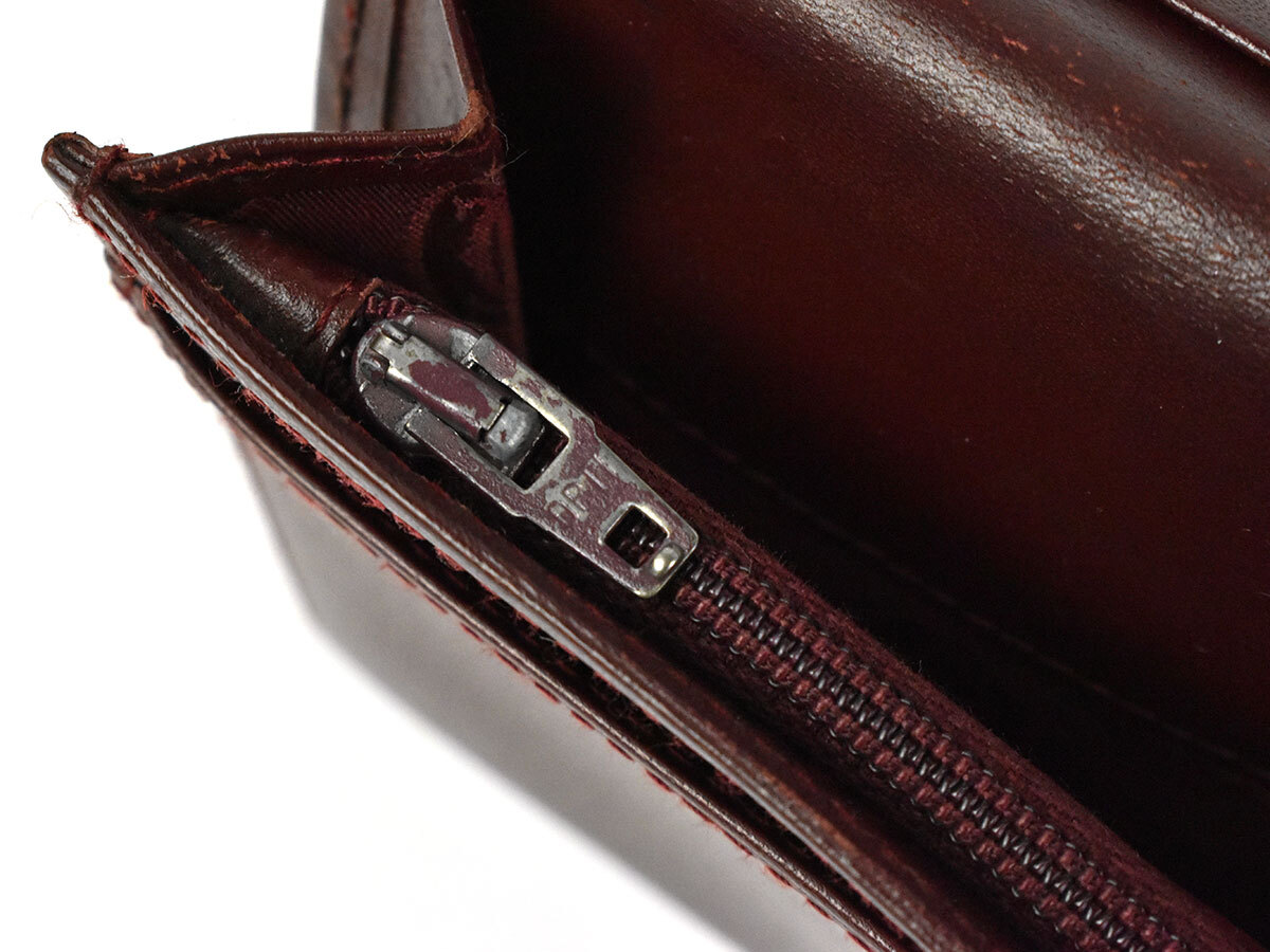 | 外側・内側広範囲に割れ・ヒビ、カドに剥がれ、フリーポケットフチに接着剤剥がれ、小銭入れにメッキ剥がれがございます。 使用感が窺えますが、ご使用には差し支えなくまだまだお使い頂ける商品です。 | |