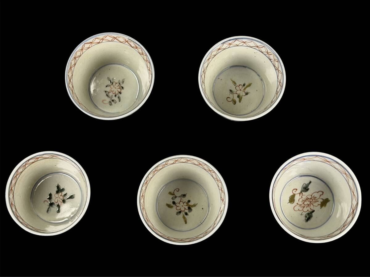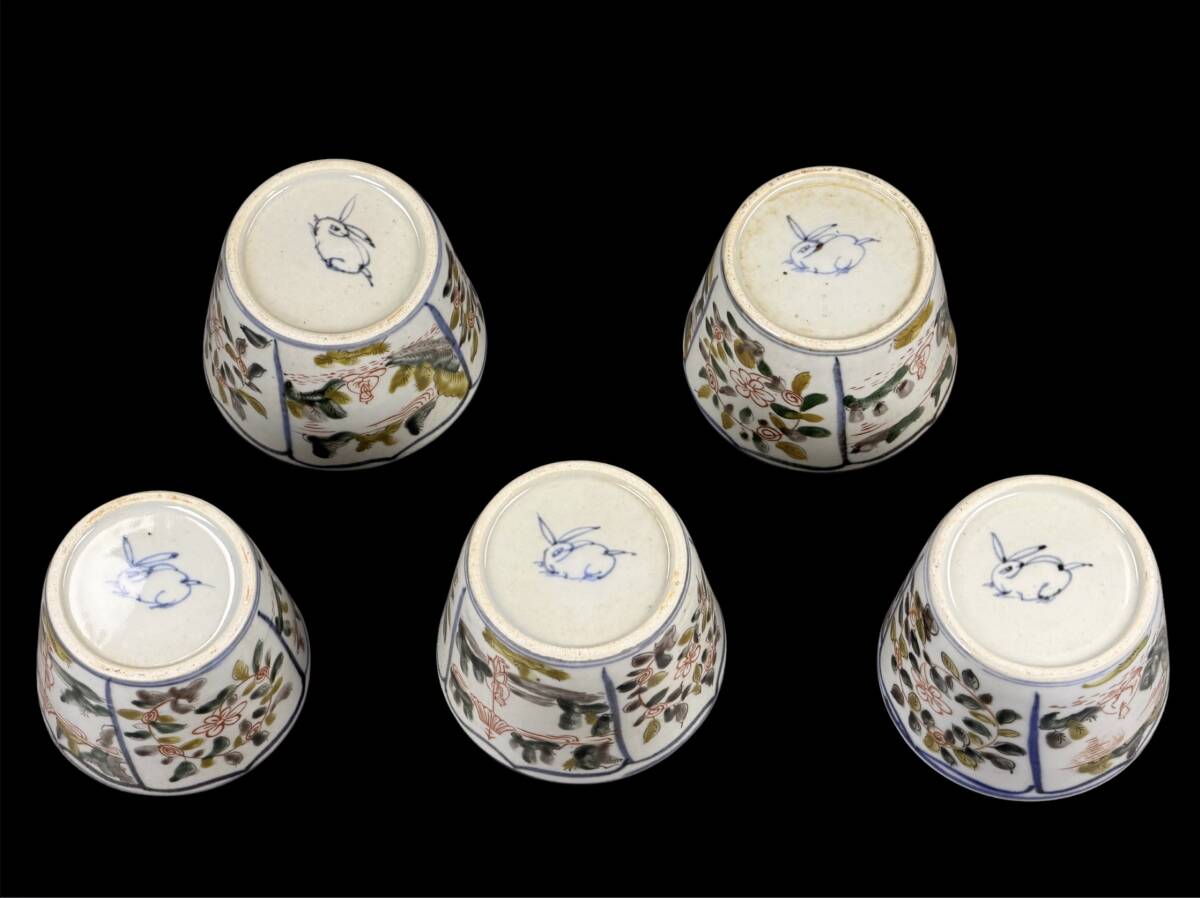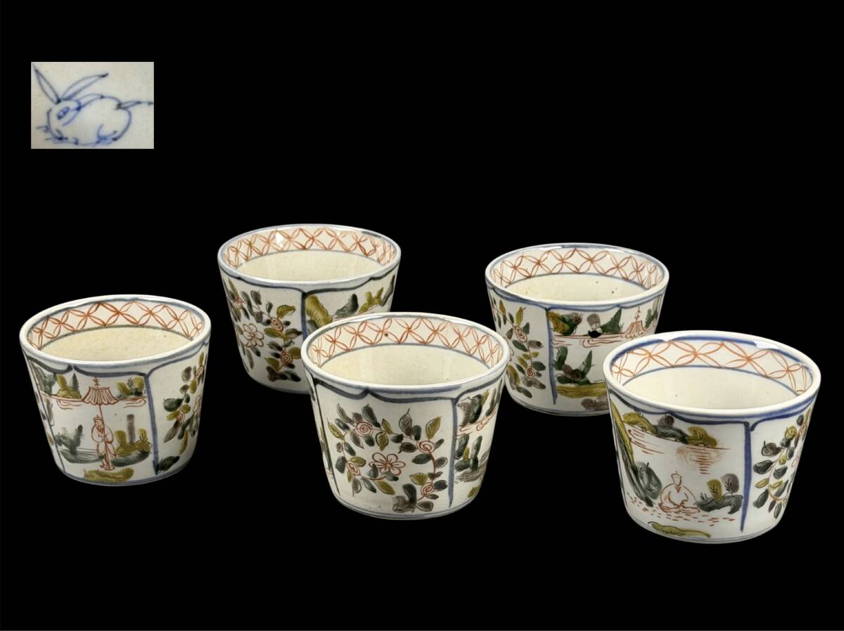 【忠古堂】古伊万里 色絵 染付 そば猪口 小鉢 向付 通り物 5客 湯呑 茶碗 うさぎ 赤絵 焼物 陶芸 陶器 和食器 c-291