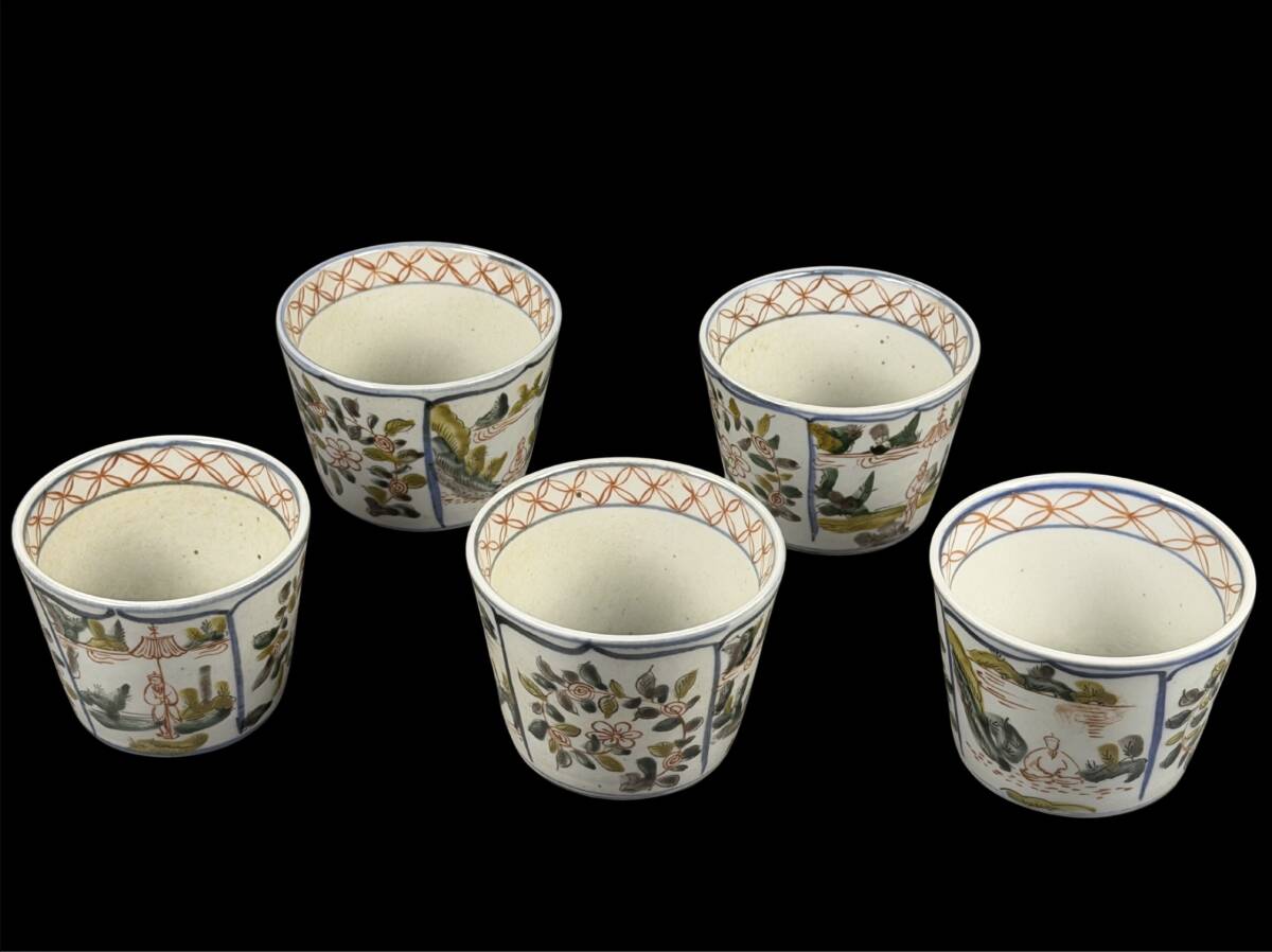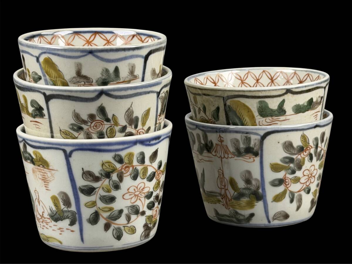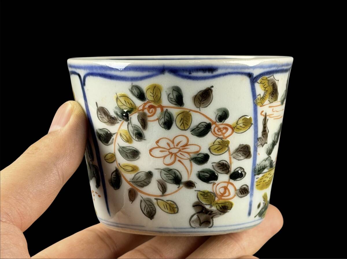 【忠古堂】古伊万里 色絵 染付 そば猪口 小鉢 向付 通り物 5客 湯呑 茶碗 うさぎ 赤絵 焼物 陶芸 陶器 和食器 c-291