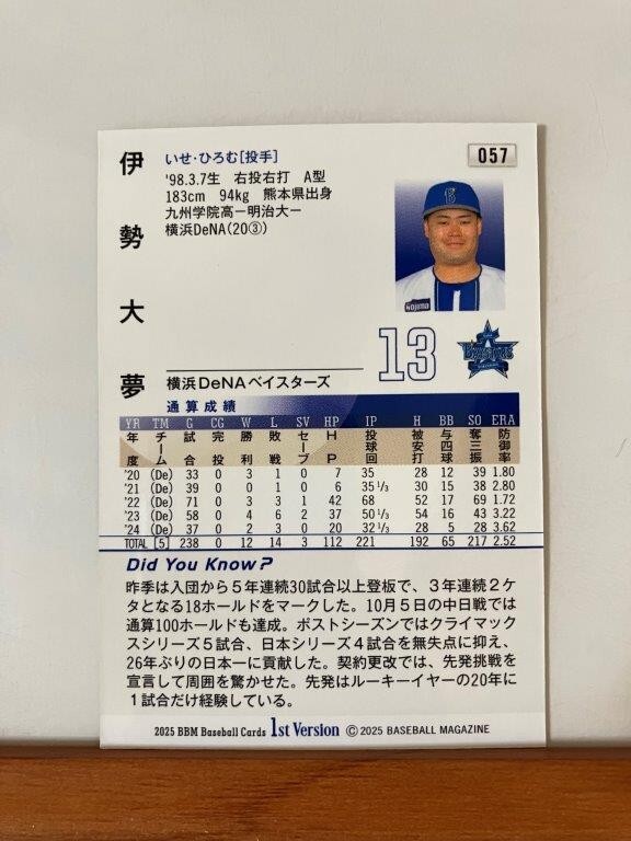 【2025 BBM 1st】057伊勢大夢(横浜DeNAベイスターズ)レギュラーカード