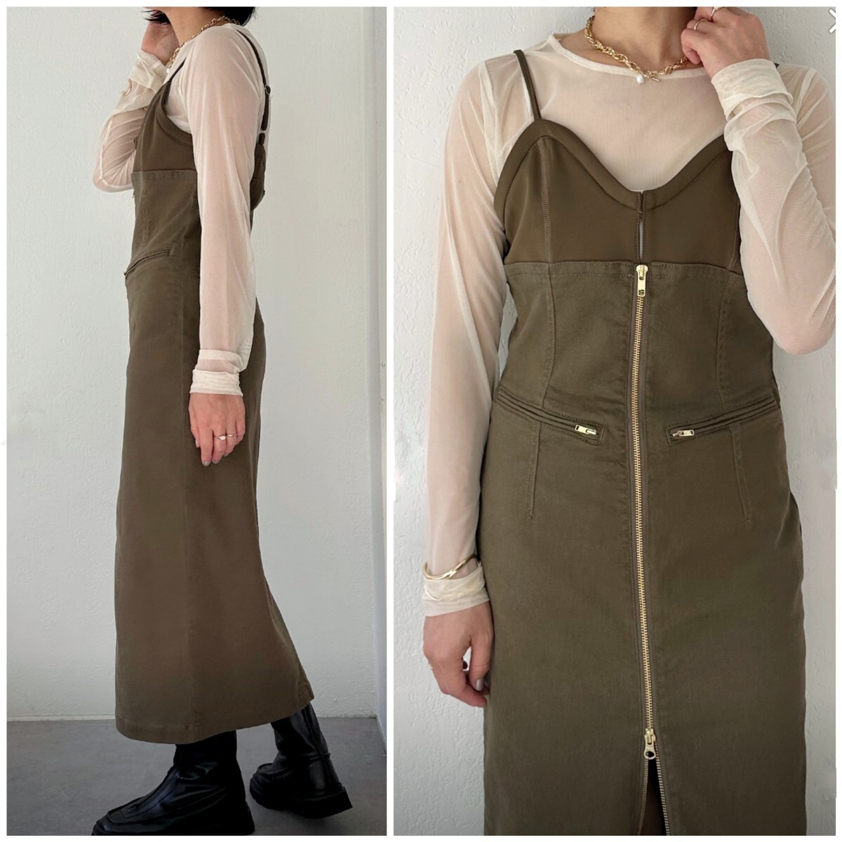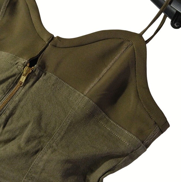フロントはダブルジップ仕様、ファスナーをどこまであげるかで肌見え調整可能です