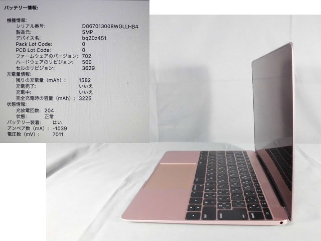 バッテリーは充放電回数が204回で、状態は正常と出ています。