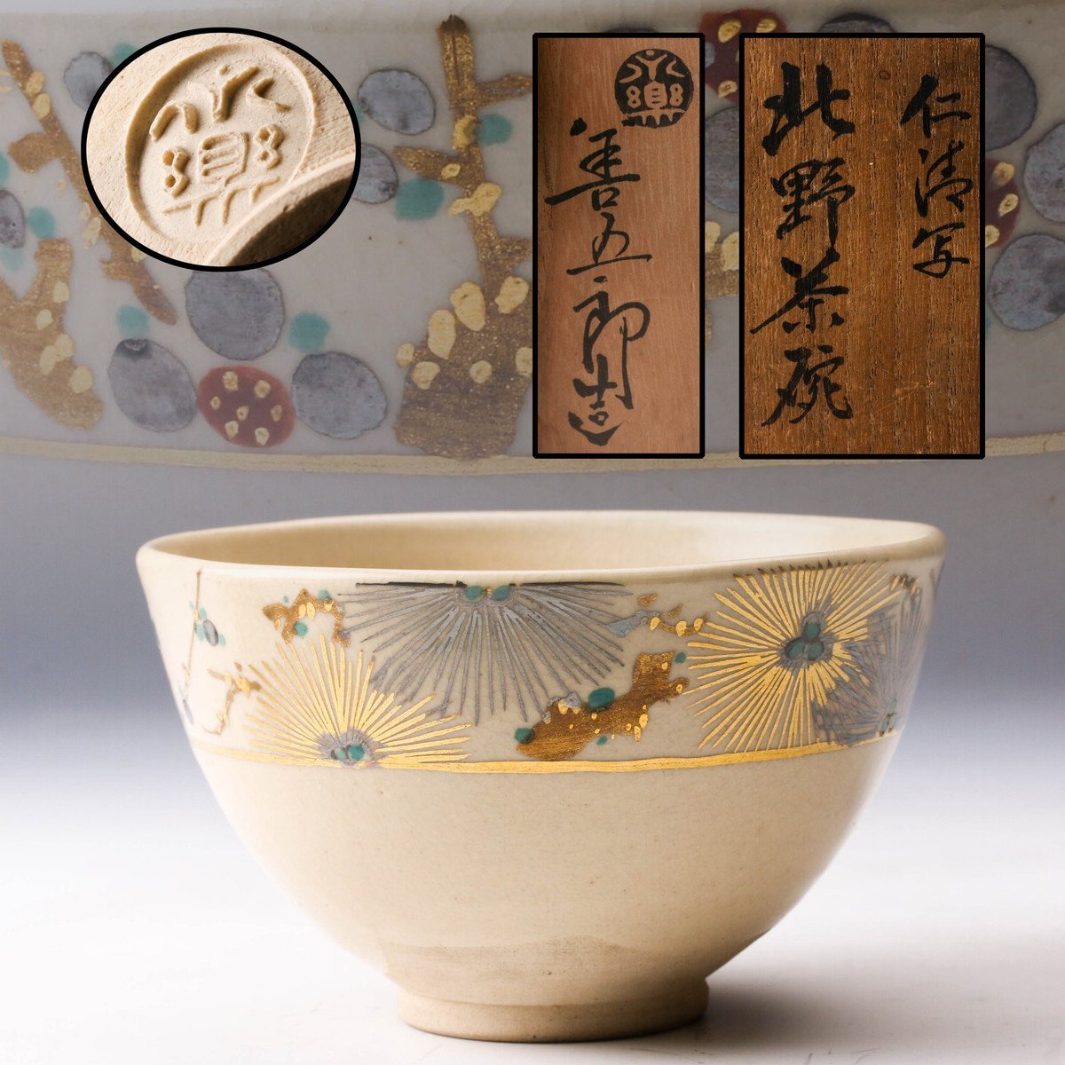 【佳香】十四代 永楽善五郎(得全) 仁清写 北野茶碗 共箱 共布 茶道具 本物保証