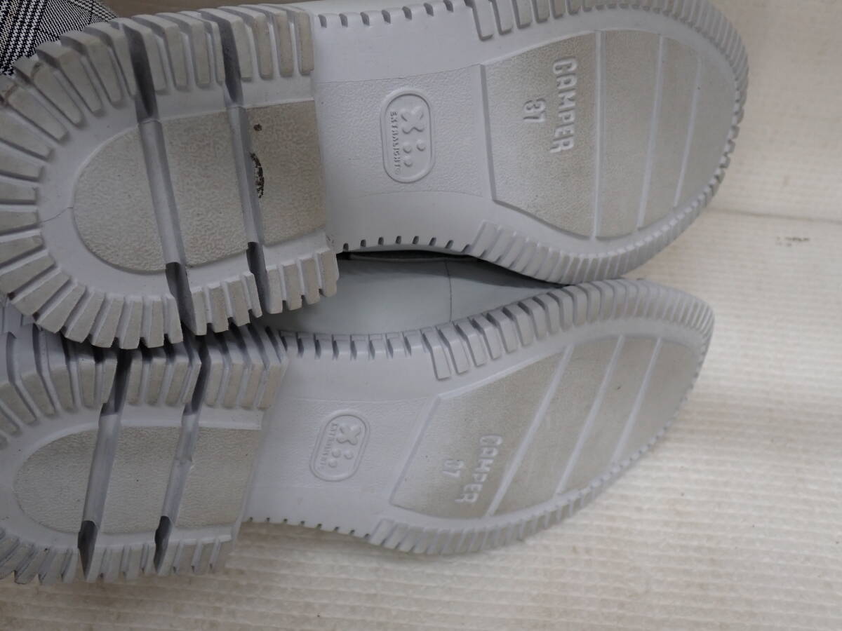 CAMPER カンペール PIX スリッポン 37/23.4cm ライトグレー レディース 靴 定形外郵便全国一律920円 J13-MB 中古品です。 甲部分のシワや靴裏の僅かな黒ずみ、ペンの様な汚れ、かかとの僅かな減りがありますが、短時間の使用のみですので、全体的に綺麗な状態です。 ○サイズ 37 約23.4cm 詳しい状態などは画像を参考に判断してください。 状態の説明はあくまでも出品者の主観ですので、神経質な方のご入札はお控え願います。 写真に写っている物がすべてですので、その他に付属品などはありません。 ※ご使用のパソコン、モニターなどの環境によっては実際の色と若干異なって見える場合がございます。 お探しの方はお見逃しなく! この機会にぜひどうぞ! ノークレーム・ノーリターンとなります。 よろしくお願いします。 特定商取引法に基づく表記 【会社名】 株式会社 西川殖産 【代表取締役】 西川 守 【古物営業許可】 兵庫県公安委員会許可 第631641300006号 【店舗】 エタニティ野里店 【営業所所在地】 兵庫県姫路市野里311-3 アクロポリスⅡ-1F 【連絡先】 079-222-7705 【営業時間】 午前10時~午後7時 【定休日等】 水曜日は定休日となっておりますので、火曜日の夕方から水曜日にご入金、ご連絡などをしていただいた方へのご連絡・発送などは翌日以降となってしまいます。 オークションにつきましても、火曜日の夜から水曜日にご落札していただいた方へのご連絡は翌日以降となってしまいます。 ※その他、GW・お盆・年末年始などもお休みを頂いておりますので、その期間中などもご連絡・発送などできません。(※休みの期間はその都度異なりますので、お急ぎの方は事前にご質問などでご確認していただけますよう、よろしくお願いします。) こちらの都合で誠に申し訳ありませんが、あらかじめご了承いただいた方のご入札をお願い致します。 | |||