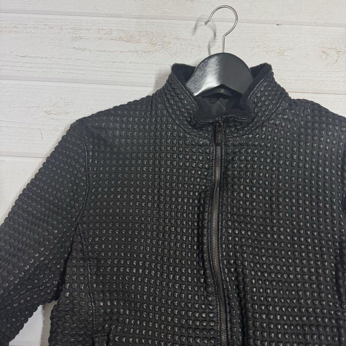 極美品 エンボス加工 ラムレザー ARMANI COLLEZIONI ムートン襟 リアルムートン アルマーニ コレツィオーニ レザージャケット ライダース ブラック 羊革 メンズ 52