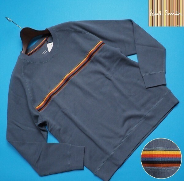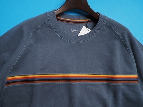 新品正規品 Paul Smith ポールスミス 10マンス アーティストストライプ 裏パイル スウェット/トレーナーMブルー(052) 30-7031