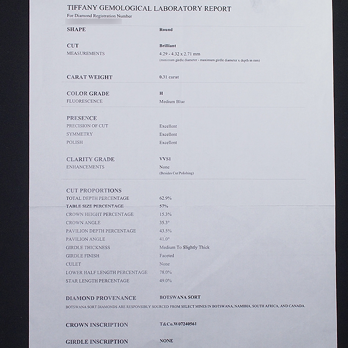 付属品:鑑定書コピー(ティファニー)