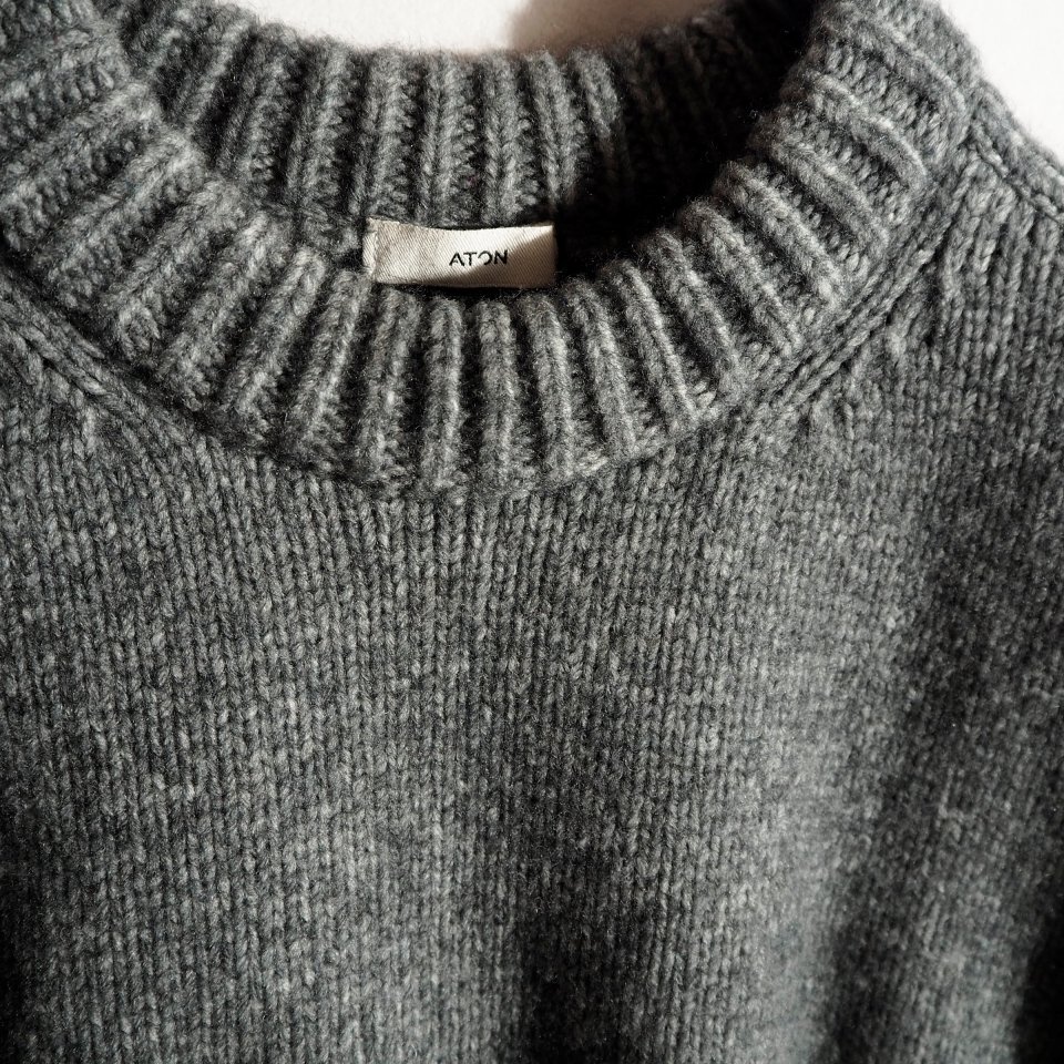 P7981P ▼ATON エイトン▼ YAK WOOL モックネックセーター グレー / オーバーサイズ ミドルゲージ ヤクウールニット 秋冬 rb