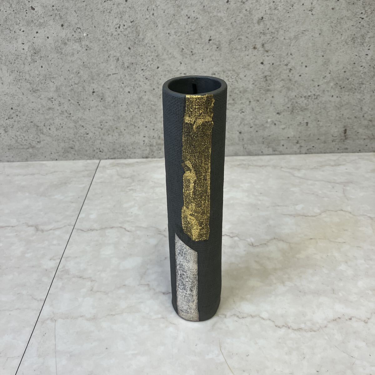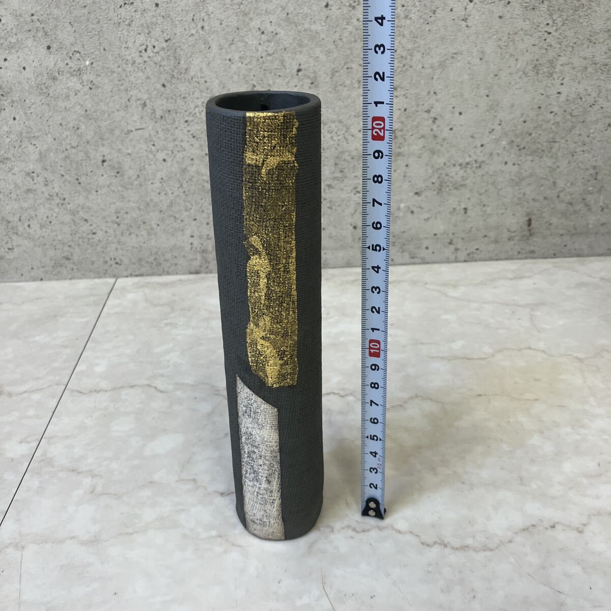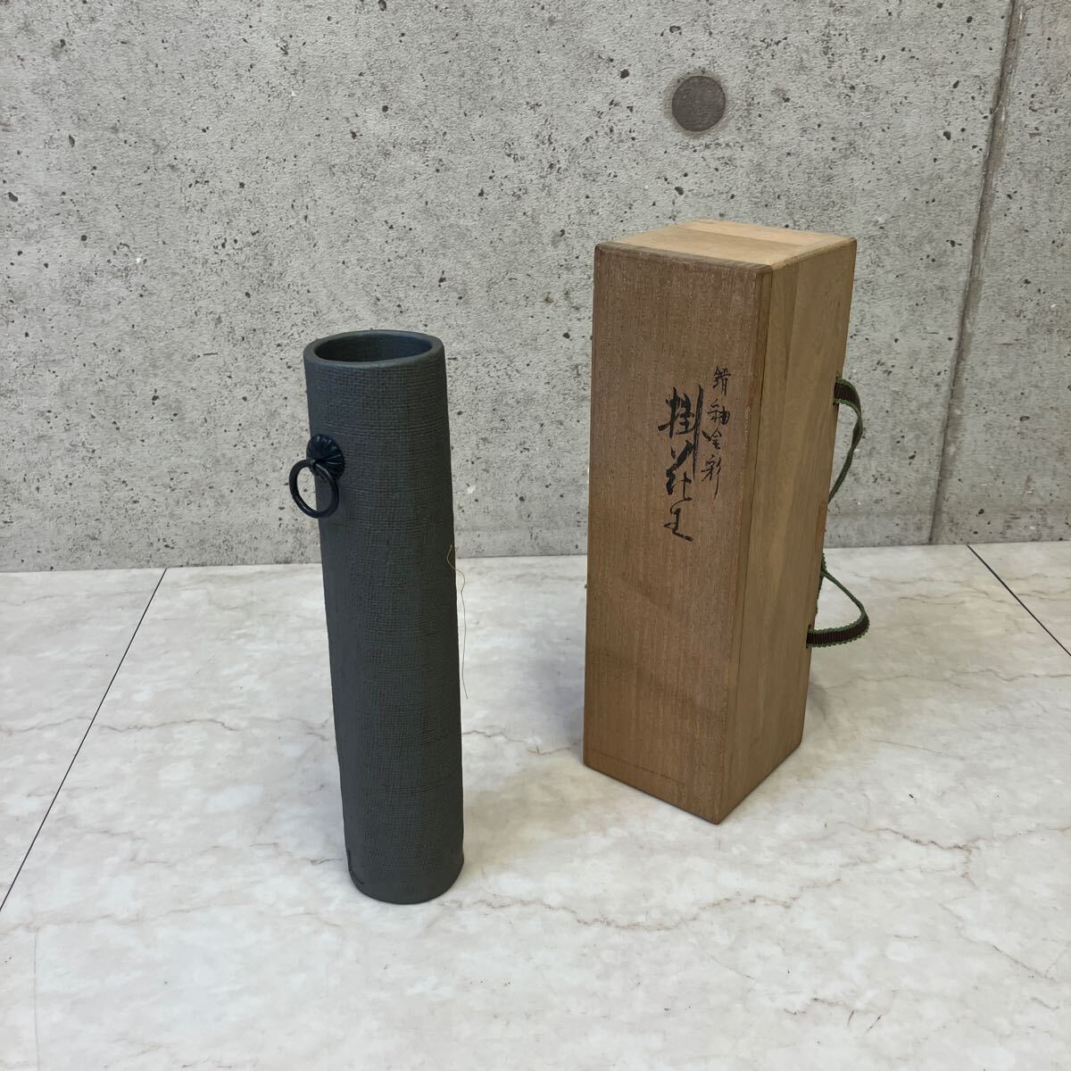 送料格安 九谷焼 掛花生 北村隆 錆釉金彩 元箱 共布付 一輪挿し 長期保管品
