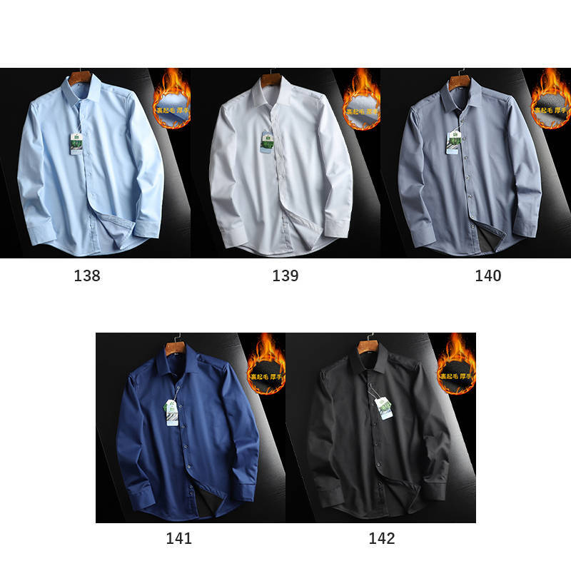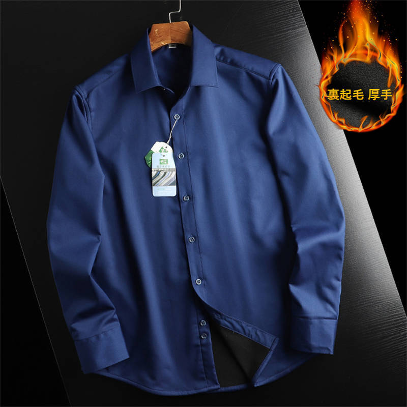 A141-3XLネイビー 裏起毛 長袖シャツ メンズ 折り襟 竹繊維 ネルシャツ 新品 暖かい 紳士服 防寒 無地 厚手 ビジネス カジュアル トップス