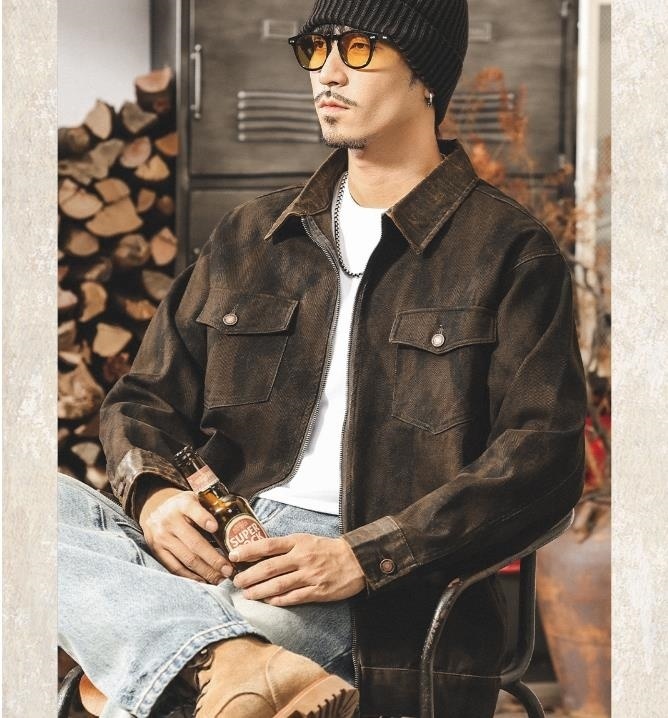 ワークジャケット レトロ メンズ*新品 カーゴジャケット アメカジ 春服秋服 ジャンパー ライダース ブルゾン【1505】キャメル 3XL