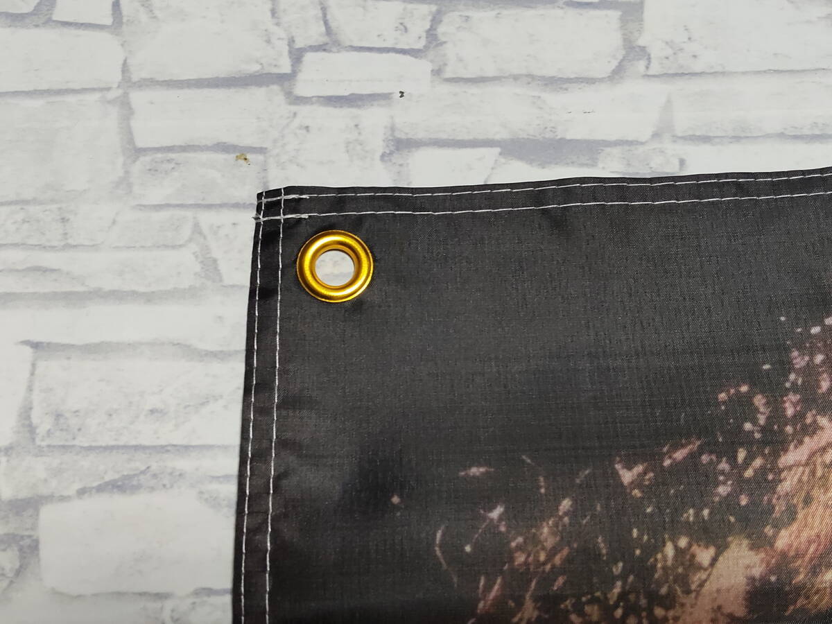 ●おおよそのサイズは、長辺90㎝/短辺60㎝となります。四隅にリングが付いており、ポールに架けたり画鋲で留めたりして飾ることができます。