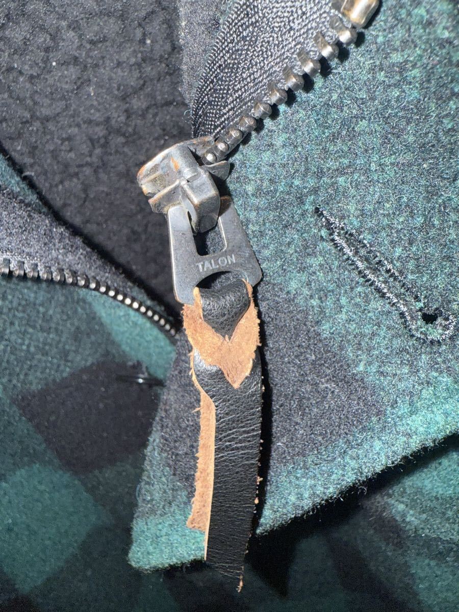 ジッパーTALON。タブは同素材のメルトンから茶芯のホースハイドにカスタムしております。