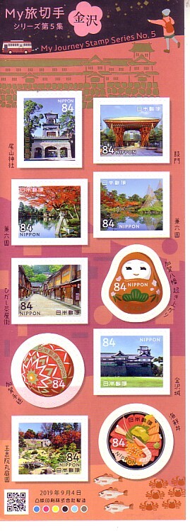 「My旅切手 シリーズ第5集 金沢」の記念切手です (84円切手X10枚)。送料は普通便110円(郵送 複数落札でも同一料金)になります。